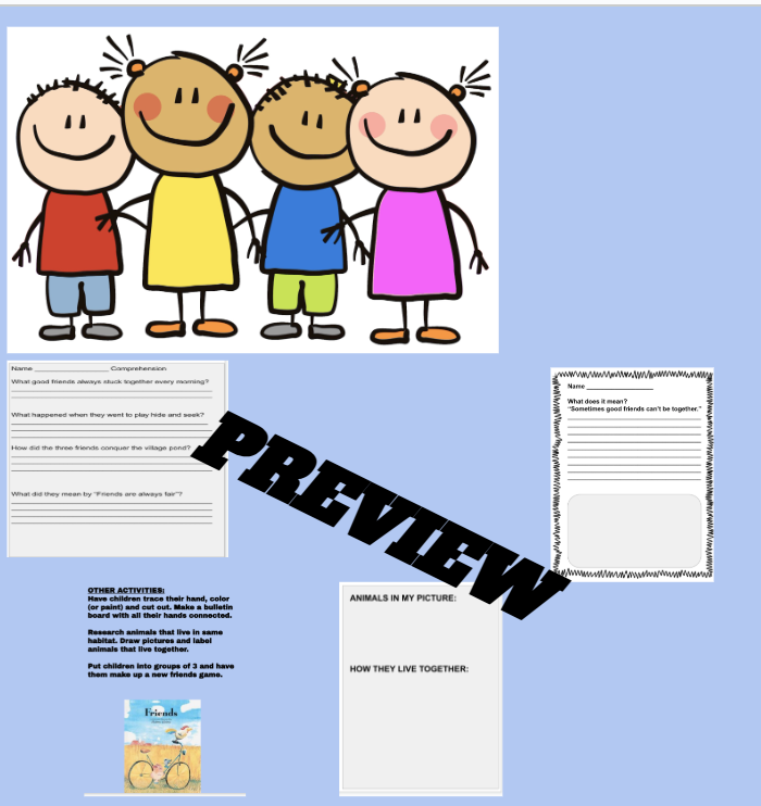 This 17-page ready-to-use ELA resources and activity packet is based on Friends by Helme Heine. Friends is a story about three good friends, Charlie Rooster, Johnny Mouse, and fat Percy, who live on a farm together.