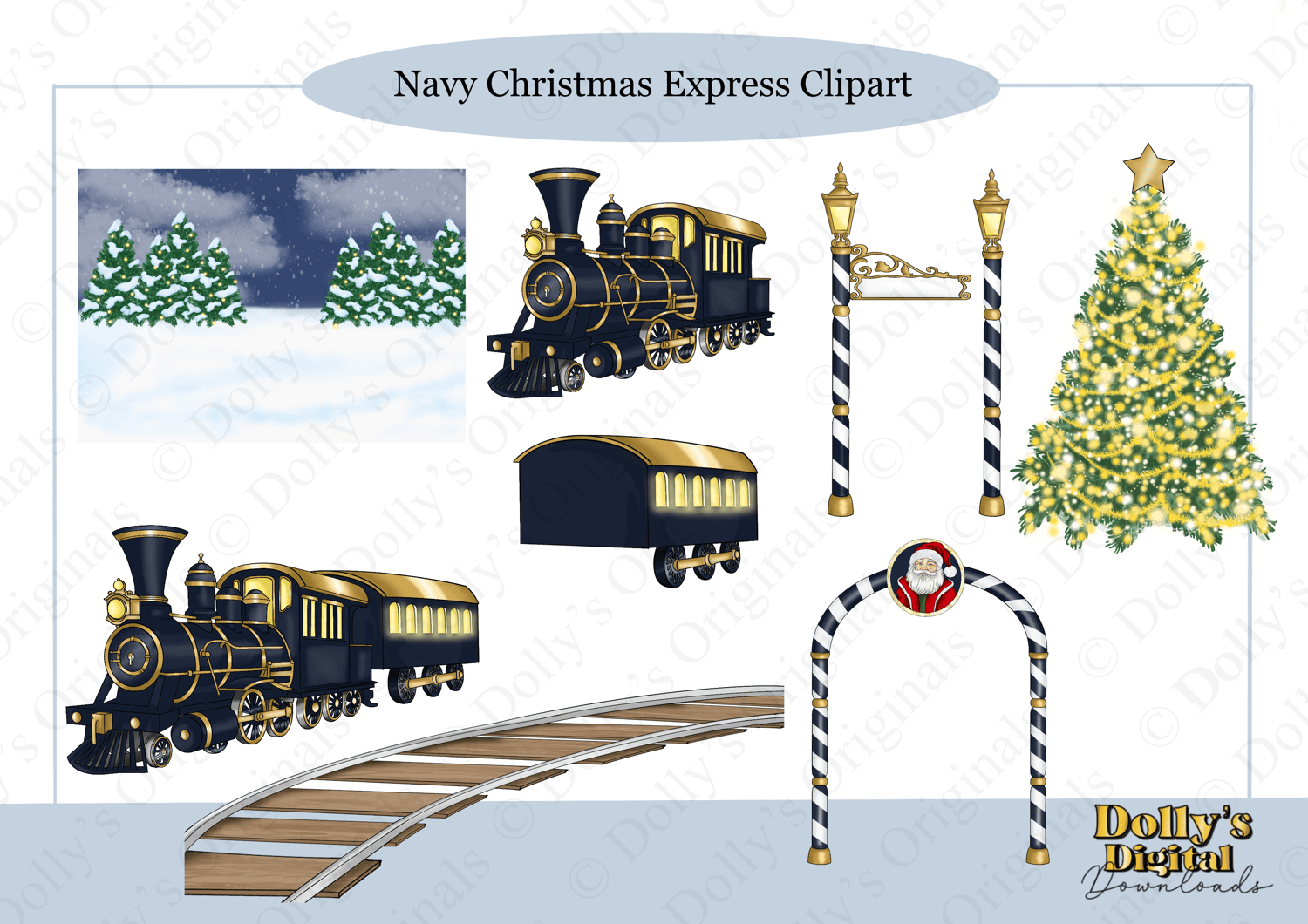 Instant digital download of our Navy Christmas Express Background Elements (9 PNG’s)