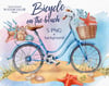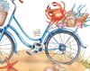 Coloured retro bicycles on the beach. Compositions with crabs, seastars, seashell, seagrass. Nautical, summer, vacation theme