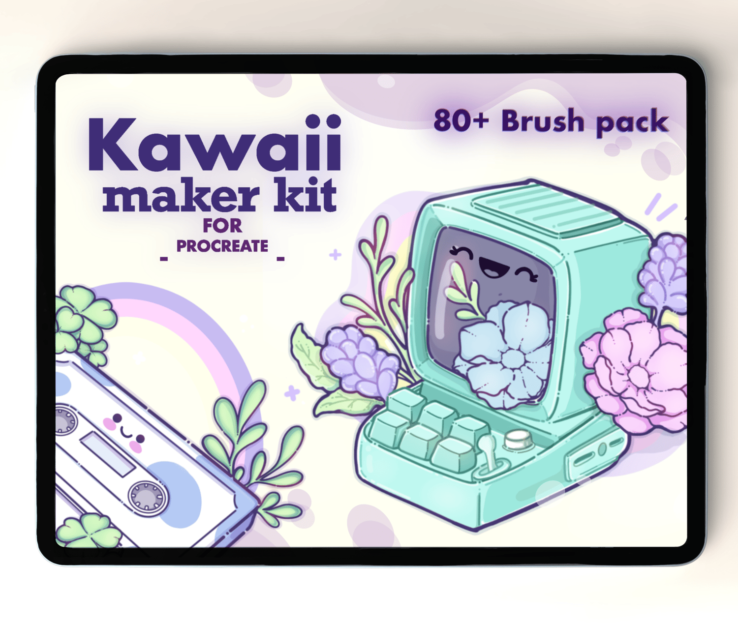 The first zip file is the kawaii maker kit bundle, which contains 6 sets of procreate stamp brushes.