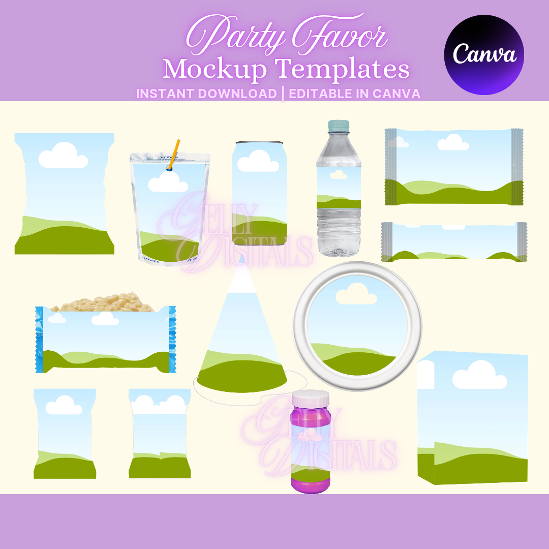 Transform your party favors into beautiful, customized creations with this complete party favor template bundle.