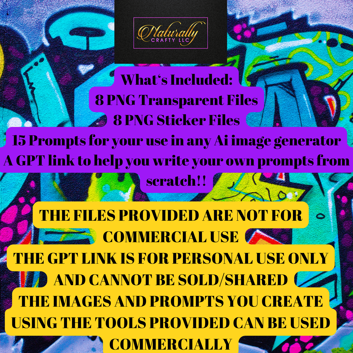 Unlock your artistic potential with the Naturally Crafty Image Prompt Creator and 1980's Graffiti Clipart Bundle today. Elevate your digital artistry and let your creativity shine! 🎨✨