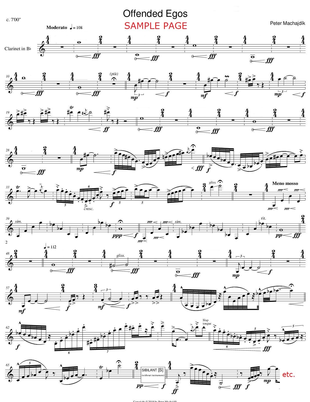 Peter Machajdík: OFFENDED EGOS for unaccompanied solo clarinet in Bb