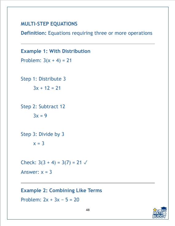 ✔️ Solve one-step and multi-step equations with purpose, not guesswork