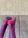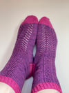 Originally designed for The Loveliest Yarn Company Sock Club, I fell in love with the lace pattern but didn't come up with a name for the pattern until i dyed the yarn! Combined they became these Moulin Rouge Socks!