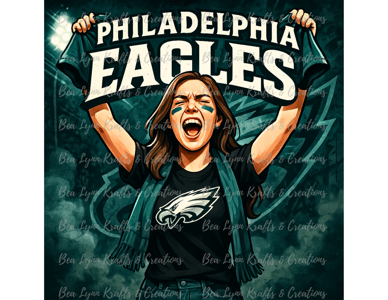 Philadelphia Eagles Fan Hype PNG | Transparent Game Day Image | Female Football Fan Clipart for Shirts, Tumblers, Posters | Instant Download | Commercial Use