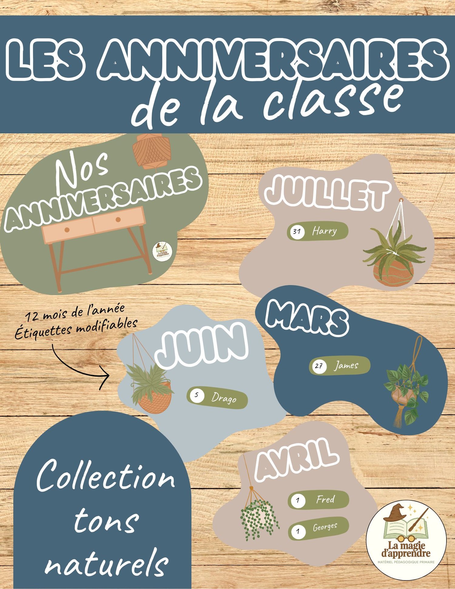 Organisez facilement les anniversaires de vos élèves avec ce système d'affichage esthétique et réutilisable, parfait pour décorer votre classe toute l’année dans un style naturel et apaisant.