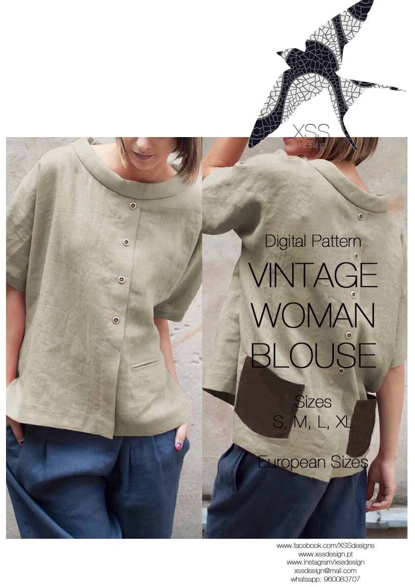 All the necessary components are in the file to be printed and arranged in a fit study on the fabric respecting the right thread of the fabric and the side on which they are arranged.