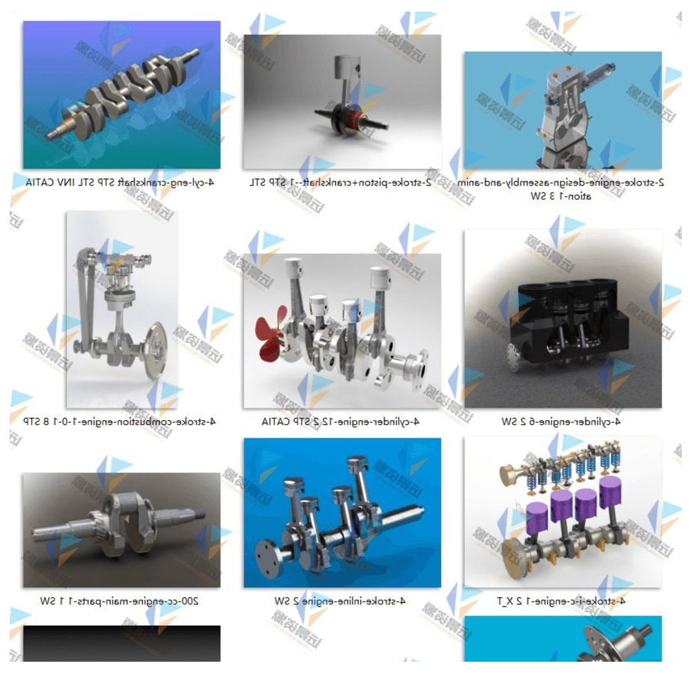 75 sets of 3D models of crankshaft and connecting rods, 3D drawings of engine components