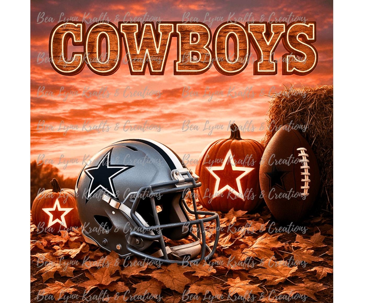 🍂🏈 Cowboys Nation, it’s game day meets fall vibes! This Dallas Cowboys PNG blends football pride with autumn energy, featuring a detailed Cowboys helmet, carved pumpkin star designs glowing like jack-o’-lanterns, and a football resting in a field of fallen leaves. With a bold COWBOYS wordmark set against a warm orange sunset sky, this design is perfect for fans who want to carry their team spirit into the fall season.