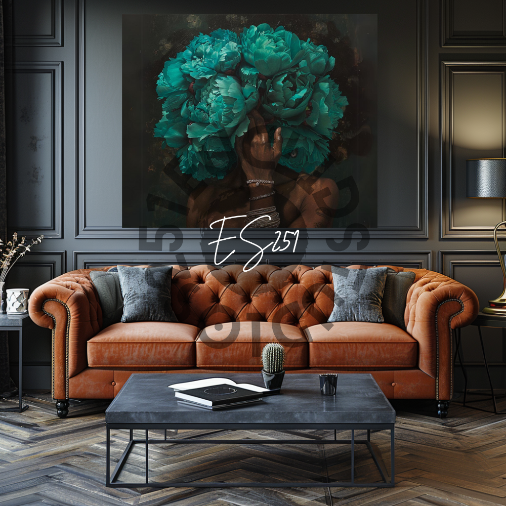 Transform your space with the captivating "Teal Elegance" wall art from Euclid Studios 251. This stunning 24x18in. piece features a striking image of vibrant teal flowers beautifully blending with the silhouette of a figure adorned in delicate jewelry. The bold contrast and intricate details create a mesmerizing focal point, perfect for any room. Crafted with high-quality materials, this artwork ensures durability and lasting beauty.