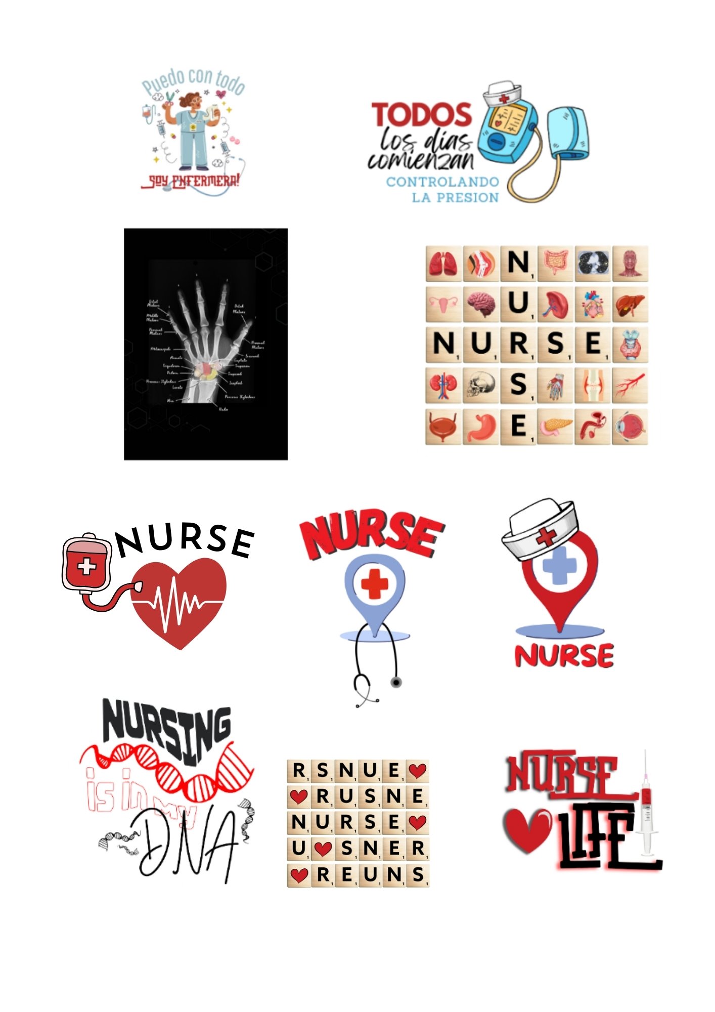 - Cada diseño está cuidadosamente ilustrado para reflejar la esencia de la enfermería.