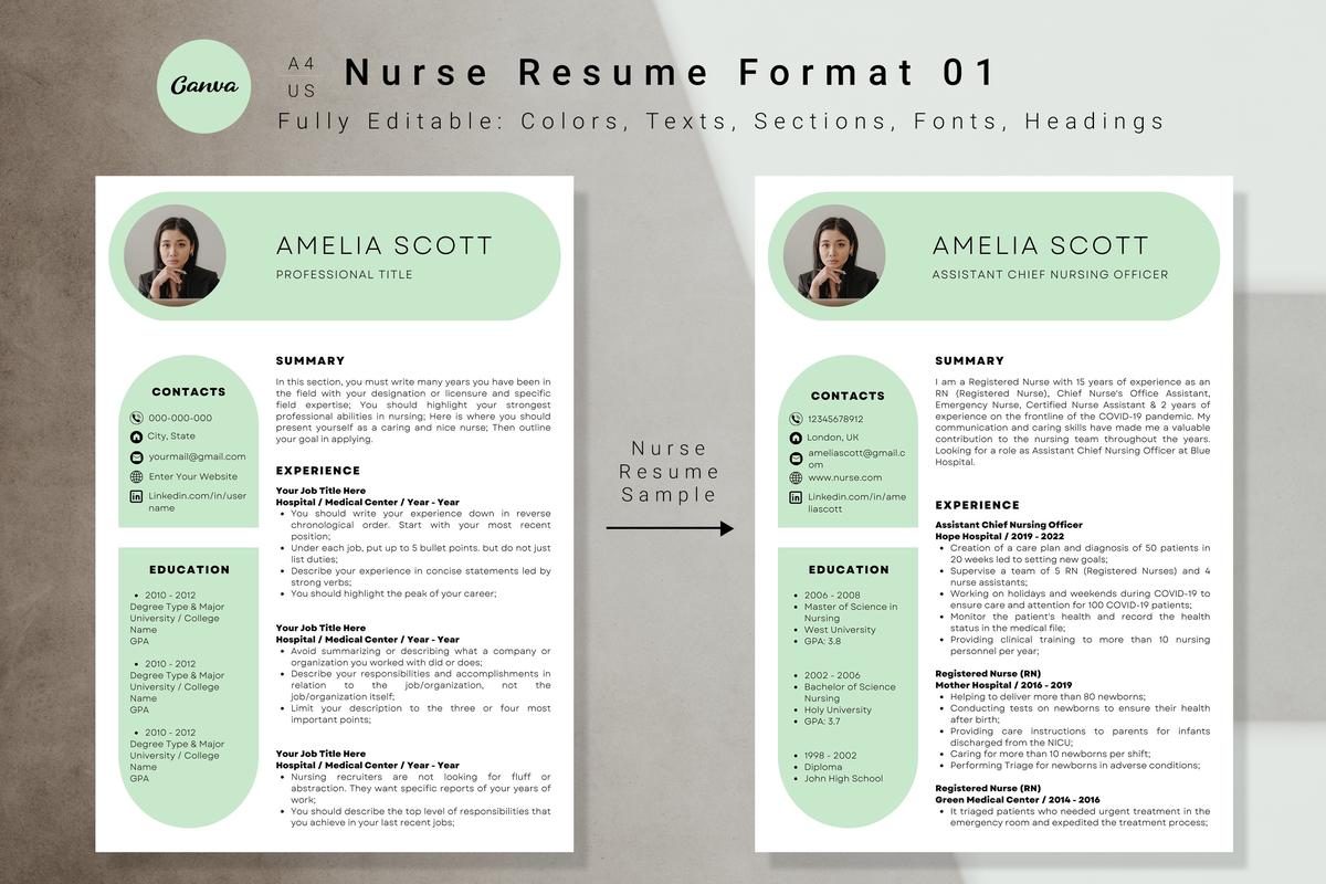 Nurse Resume Canva Template 04, Technical Writing Tips, ATS friendly, CNA Job Editable A4 Personalized US Letter Design, New Grad Healthcare