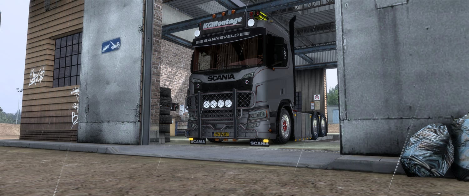 Replaced base SCS R model and tuning addons, using with other mods or types of nextgen cabins cause dont work correct. Scania From KGMontage, truck do not contain interior.