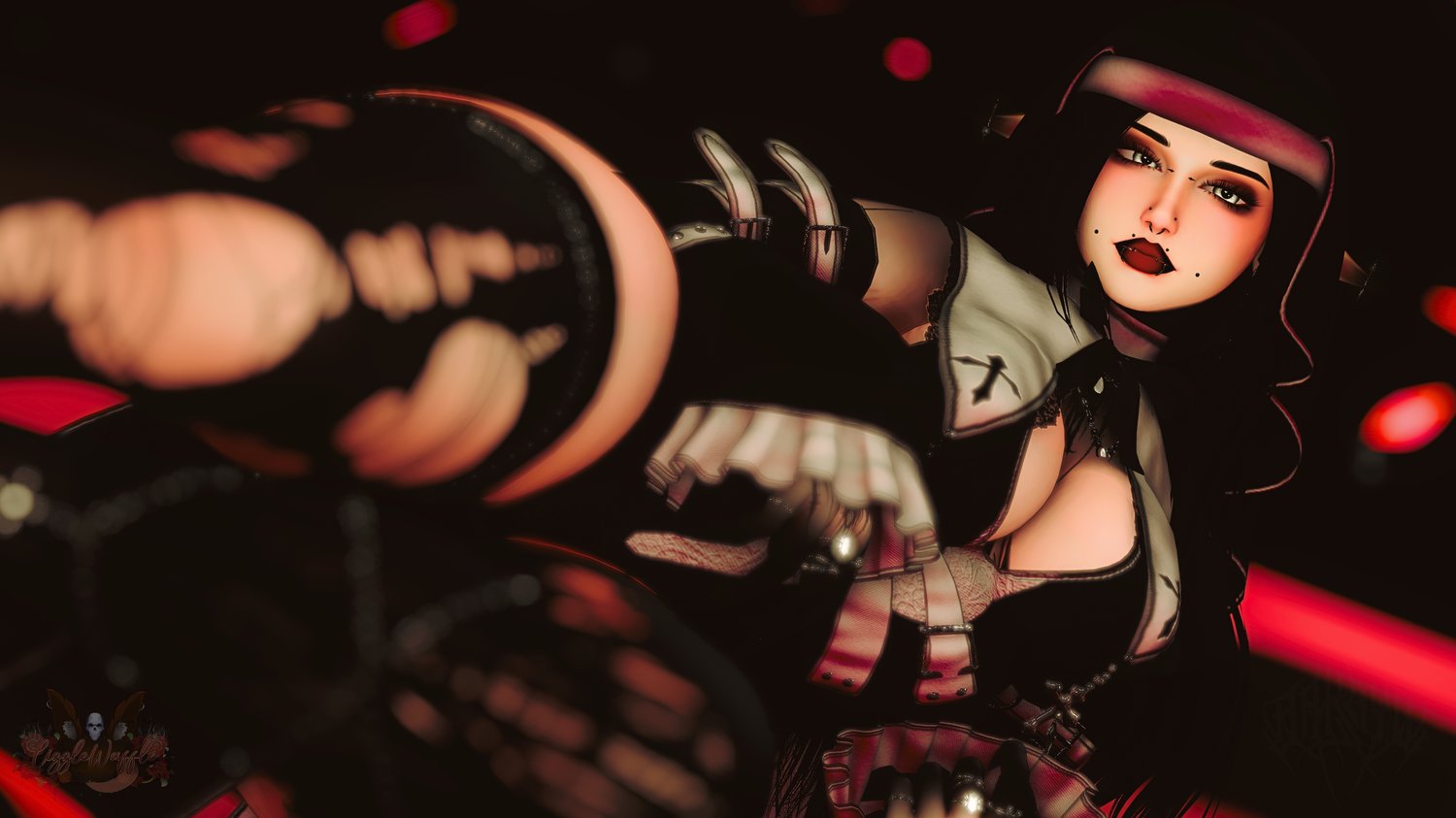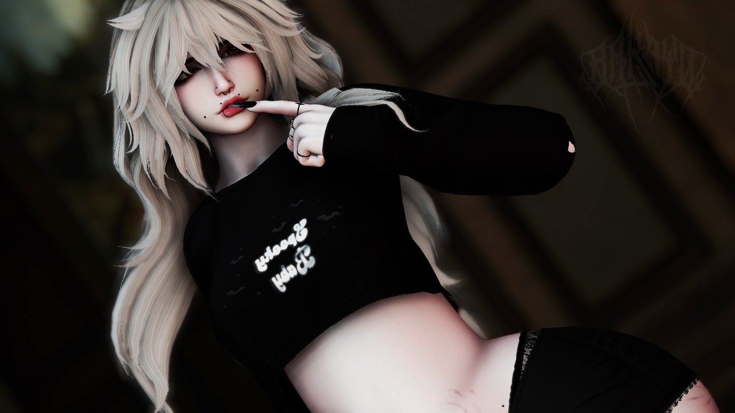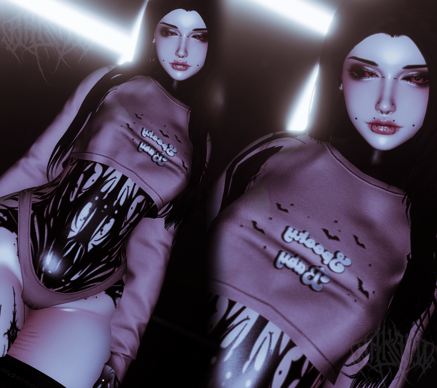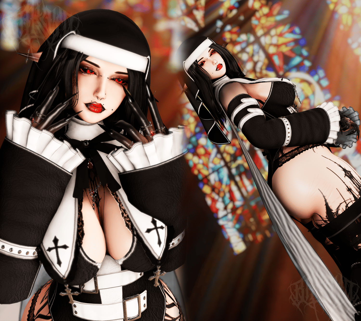Skin Normal, Corset-top, Crop-top, All rosary accessories, Elf ears, Arm-warmers, Spank Decals, Dildo Mesh, and Lipstick made by me.
