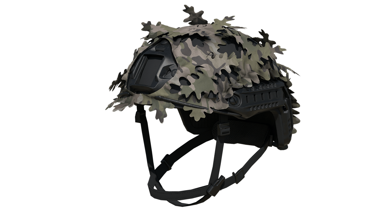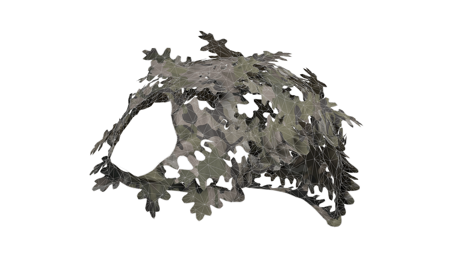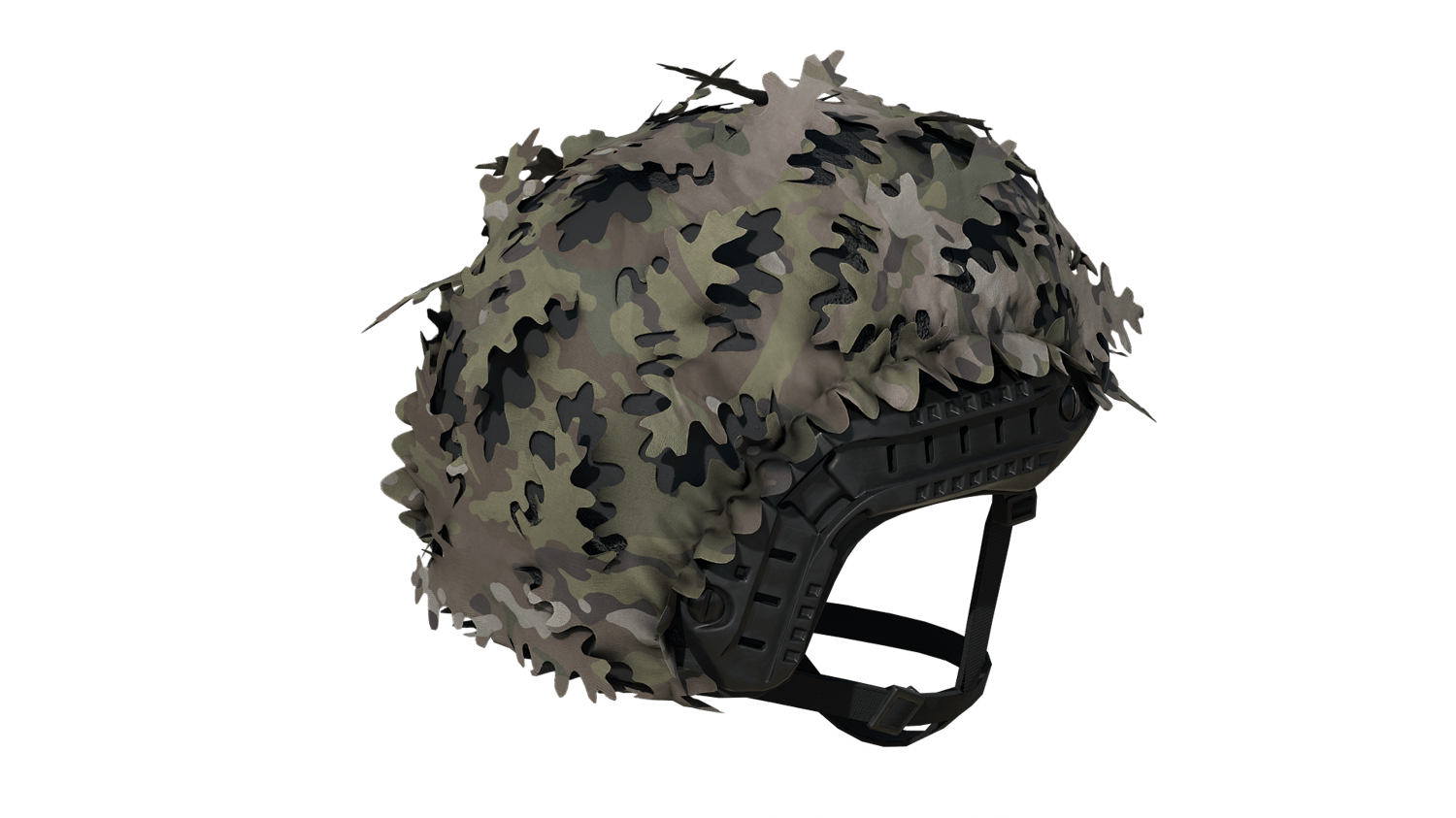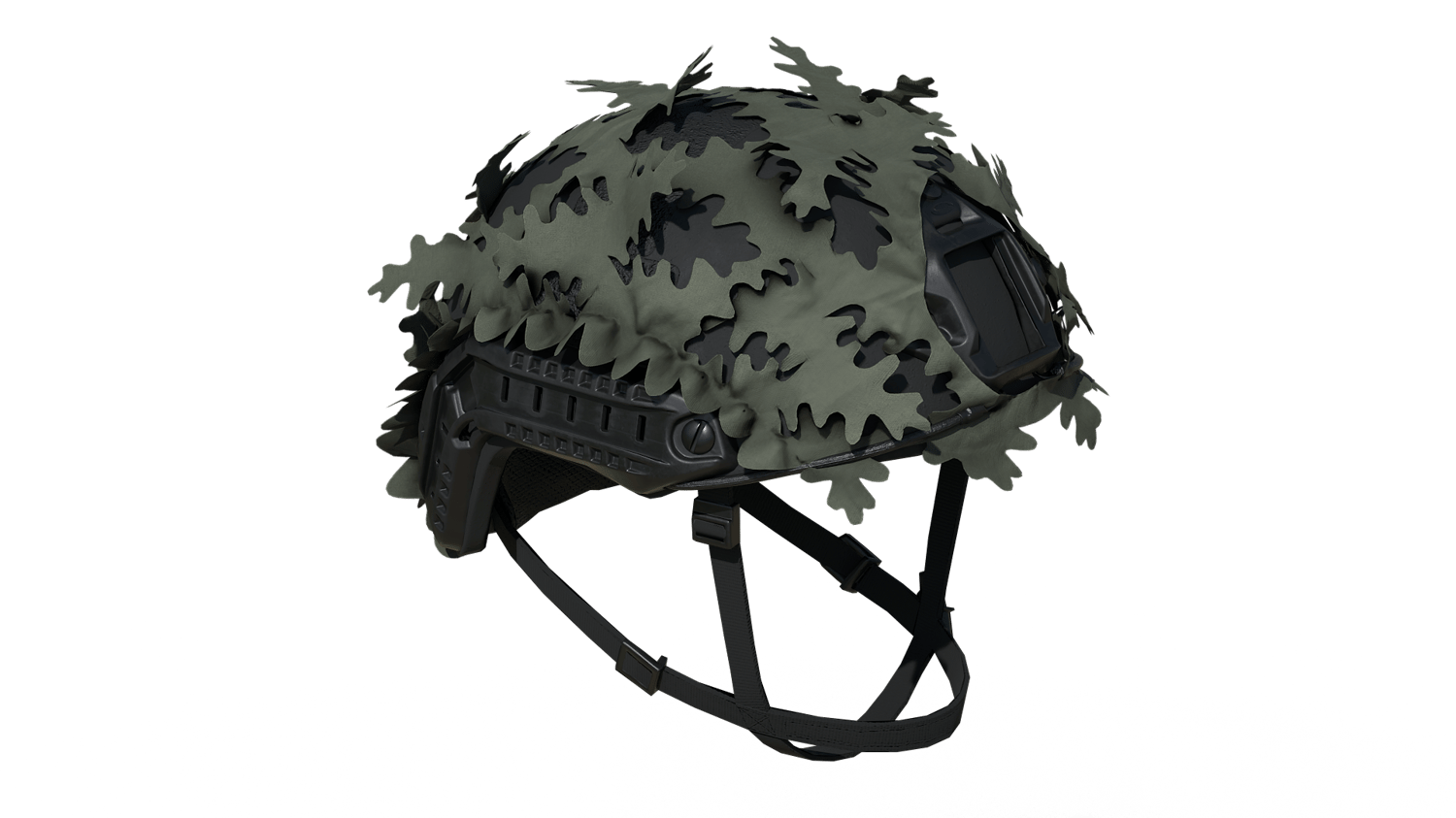 Game-ready 3D model of a laser cut helmet scrim in the shape of oak leafs for high cut helmets. Comes in Multicam and Olive Drab for easier retextures. Great for games such as Arma 3, DayZ, Reforger, Ready or Not, etc. The helmet is not included.
