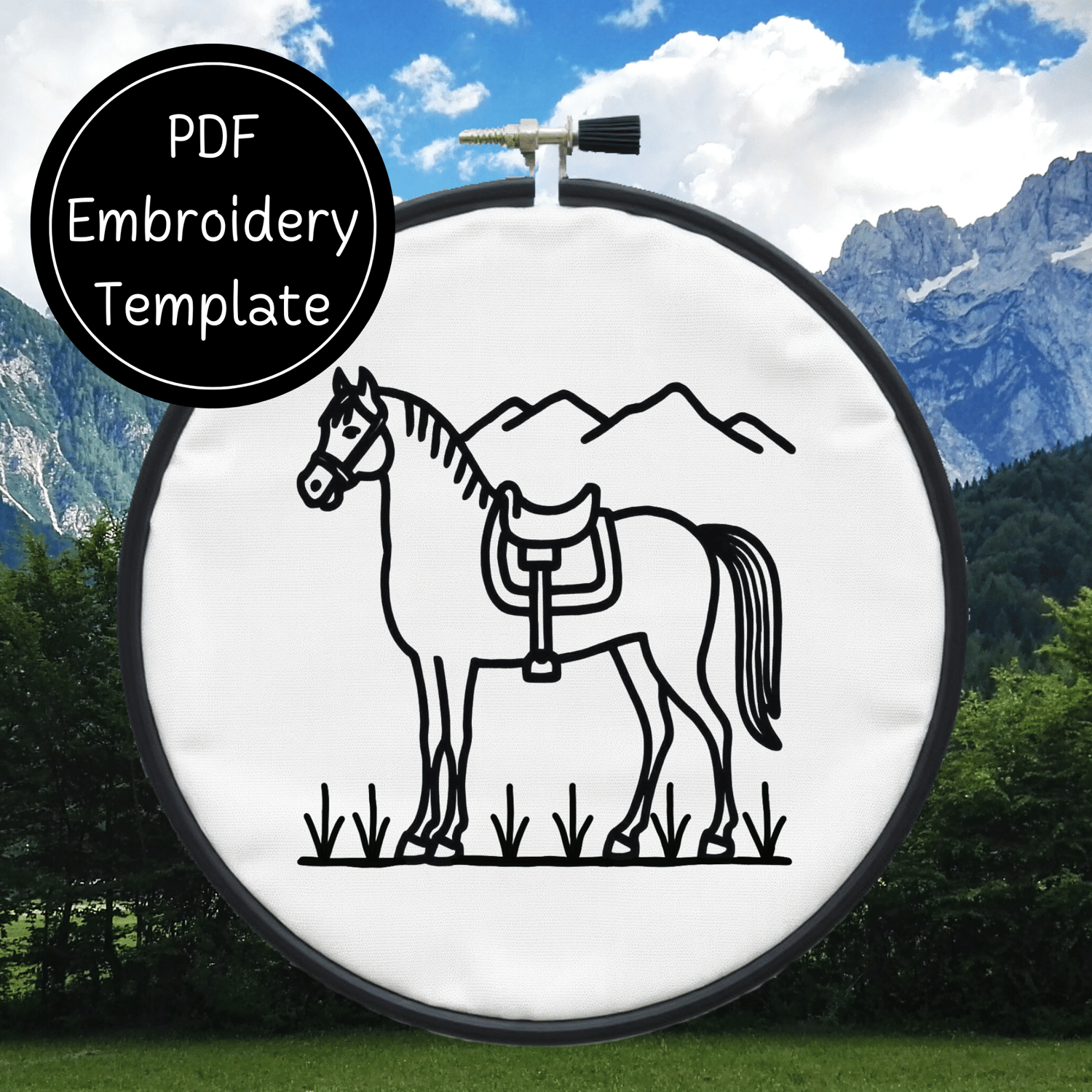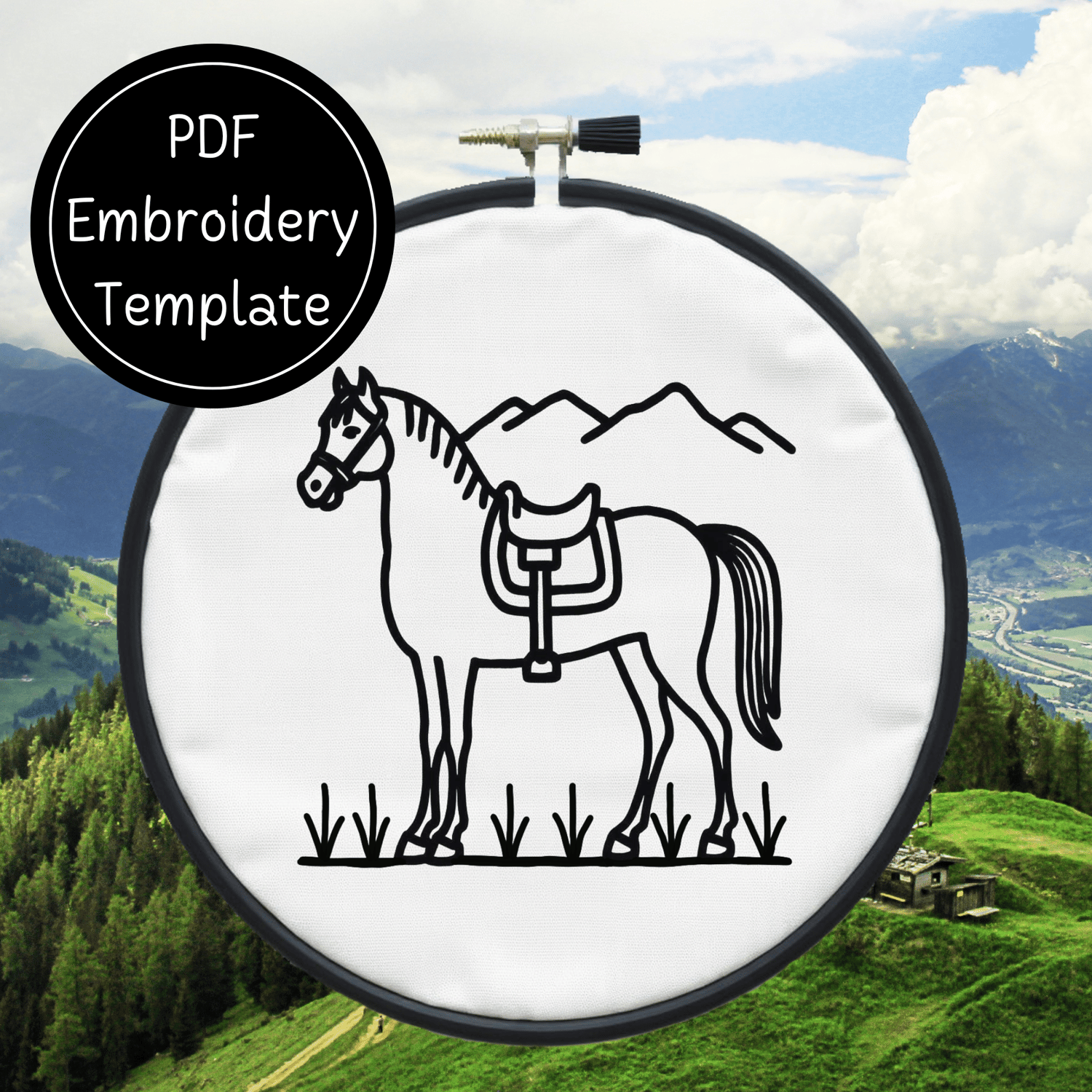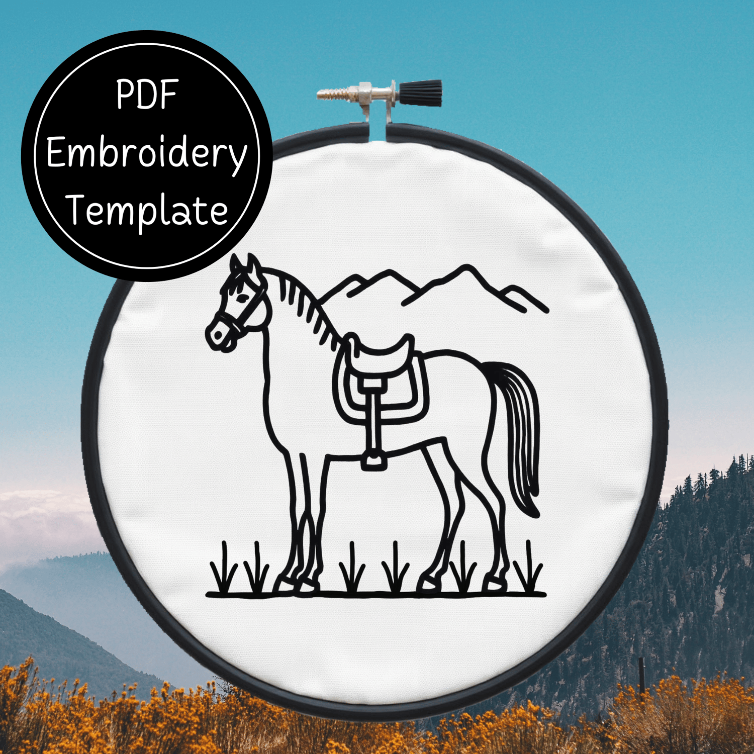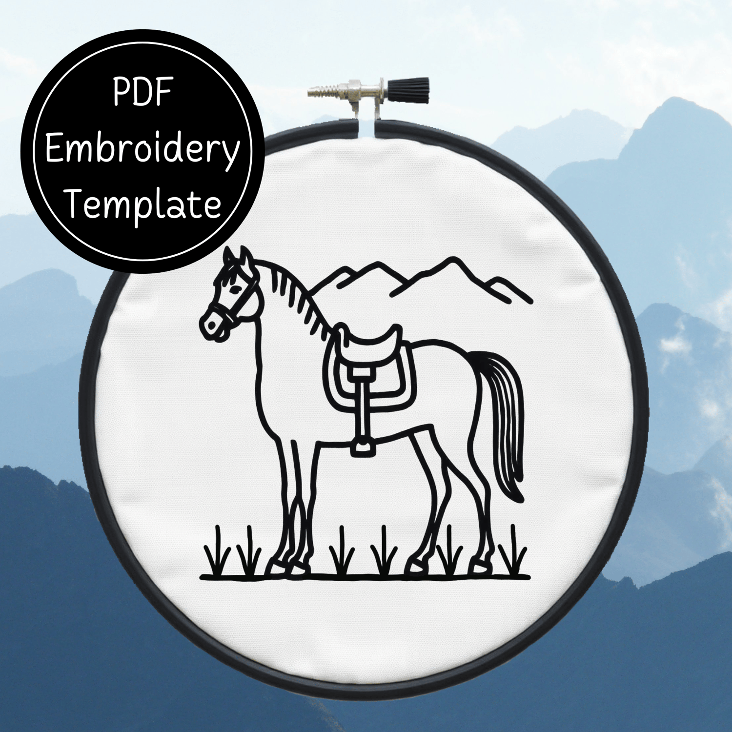 Mountain Horse Hand Embroidery Pattern DIY Equestrian Design For Hand Stitching - Instant Download
