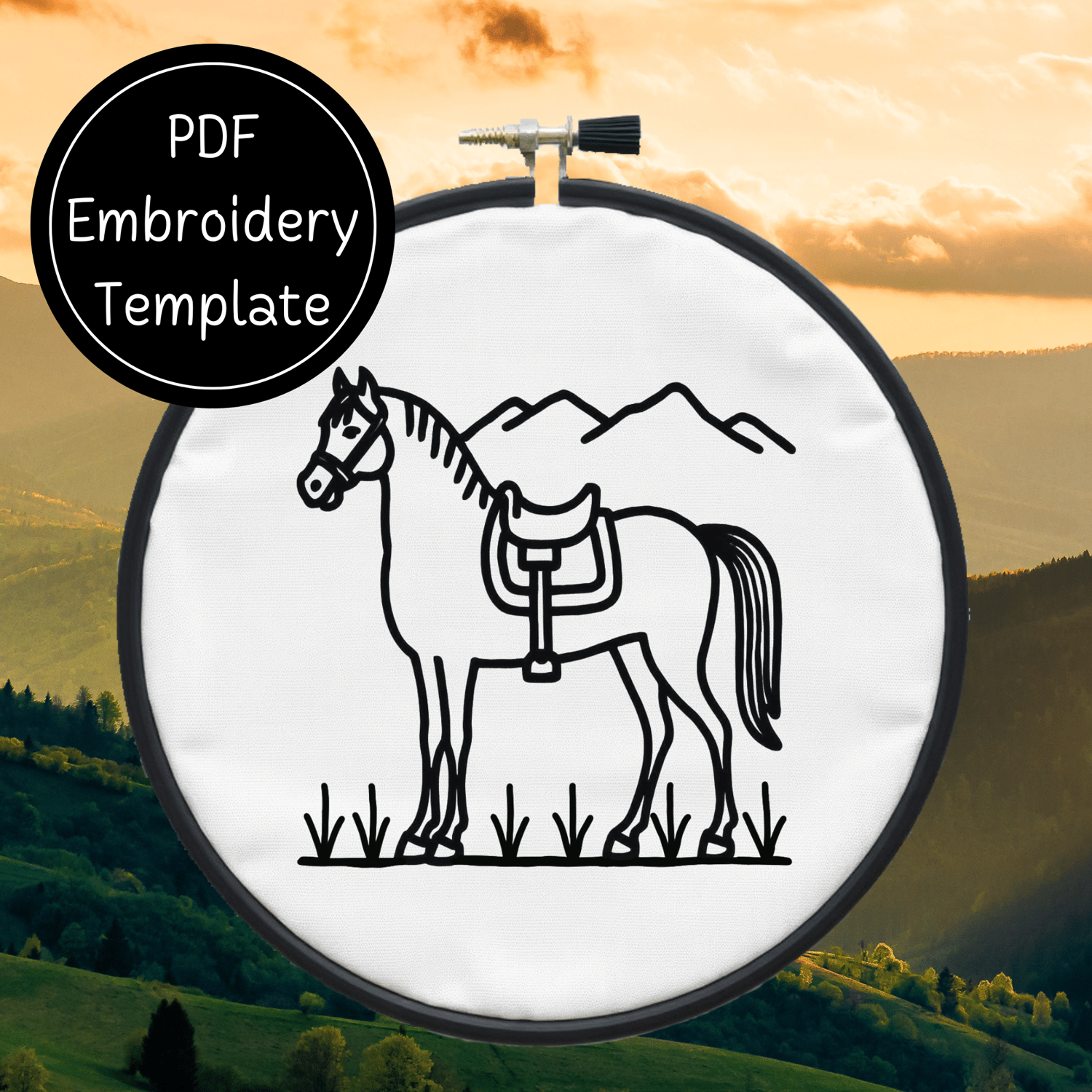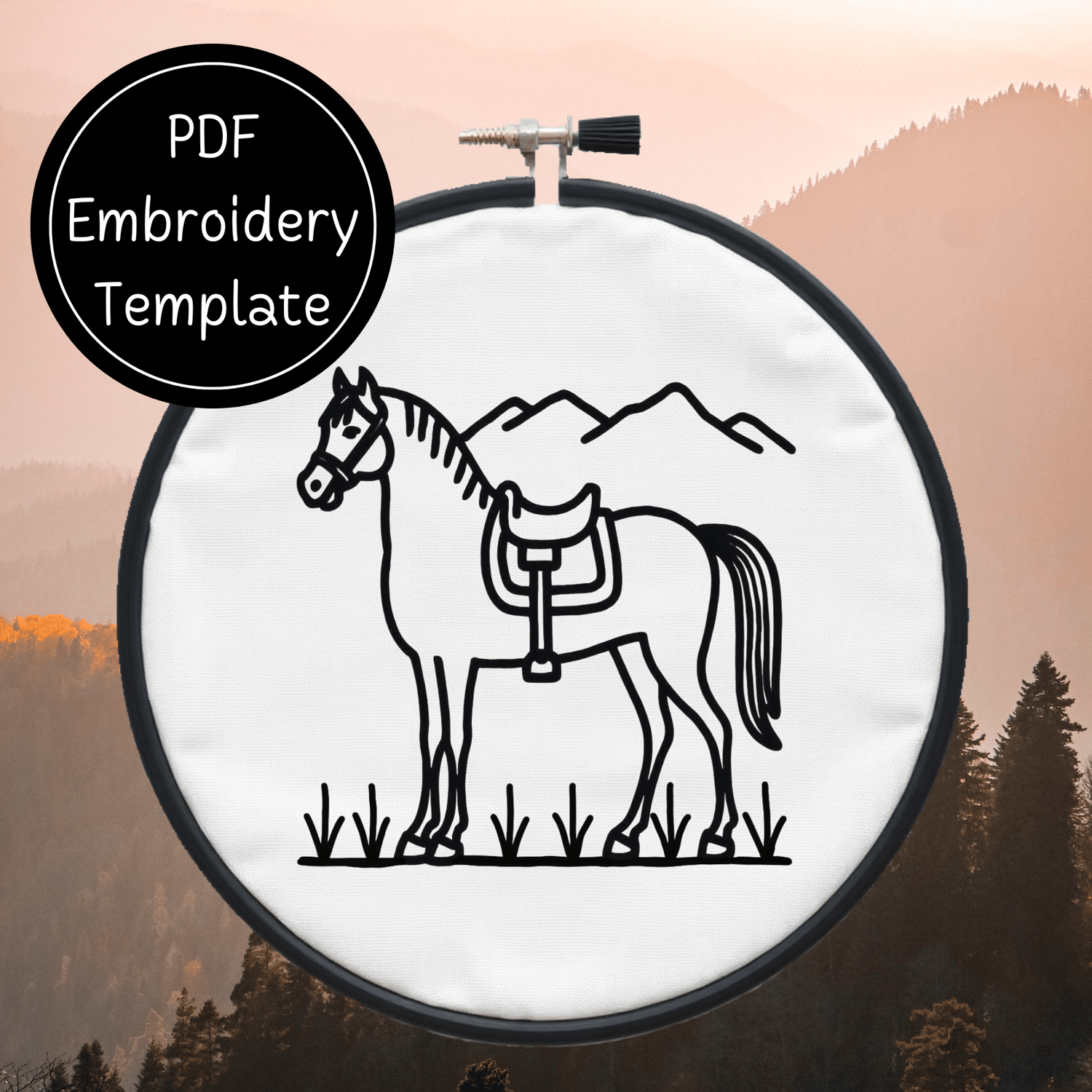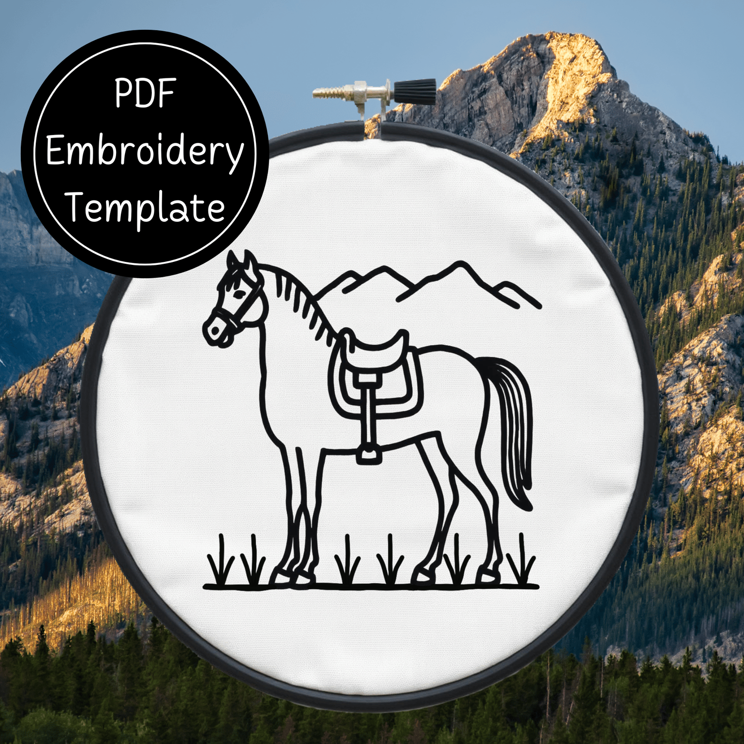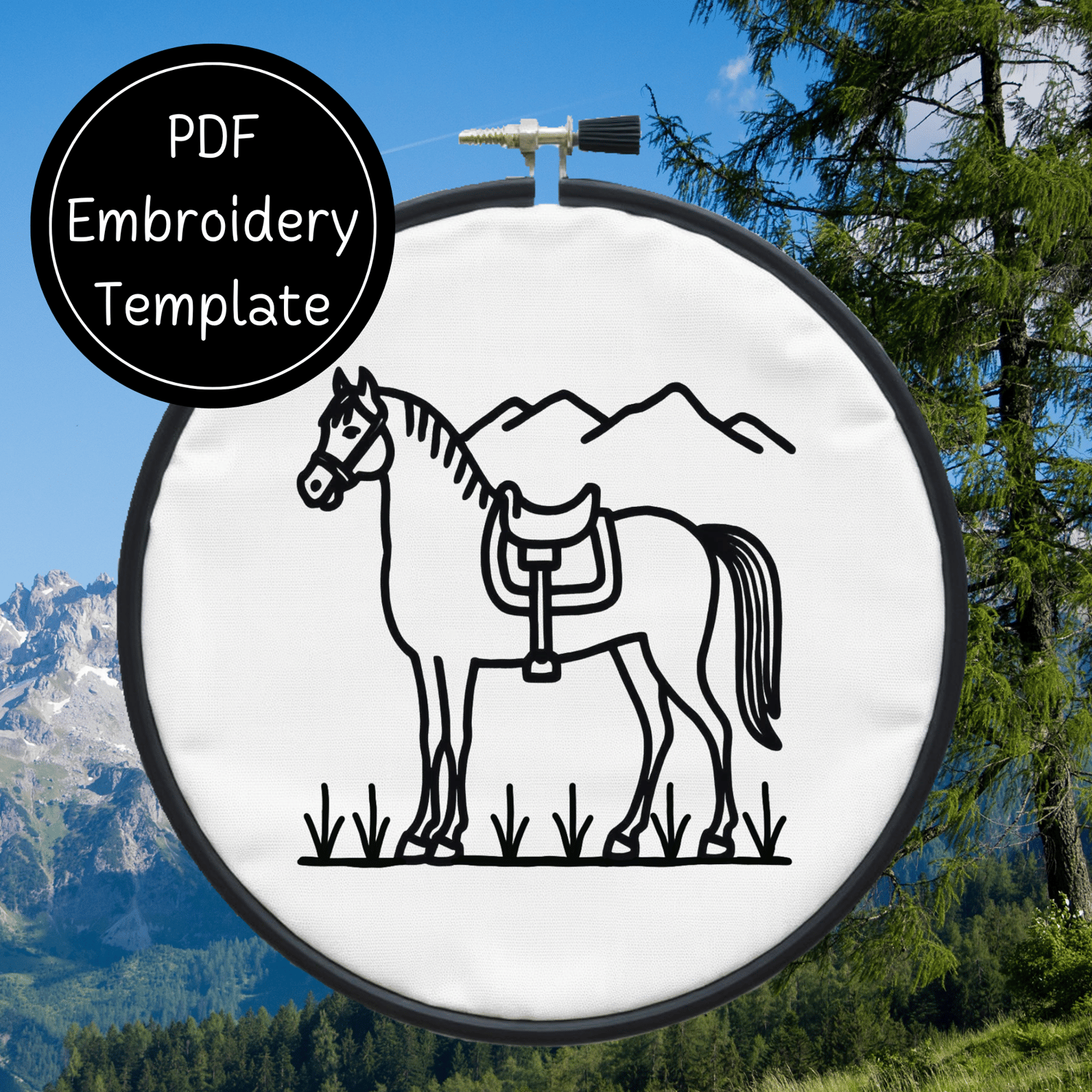 Mountain Horse Hand Embroidery Pattern DIY Equestrian Design For Hand Stitching - Instant Download