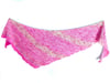 Hug Shot is an asymmetric triangle and has the same specs as Breathe and Hope except it uses a larger needle. The same yarn combinations also work.