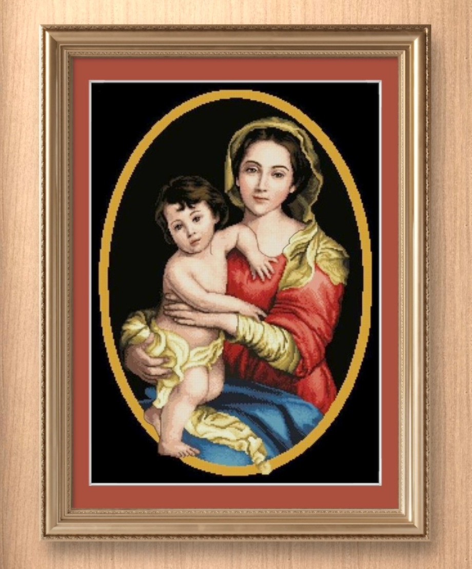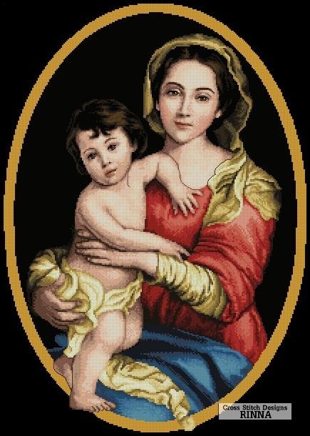 Religious Design Mama Mary and Child Cross Stitch Pattern PDF Portrait Downloadable Digital Print
