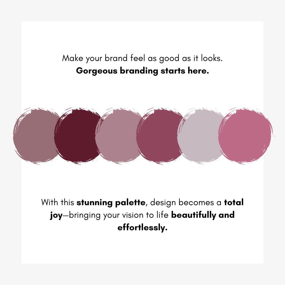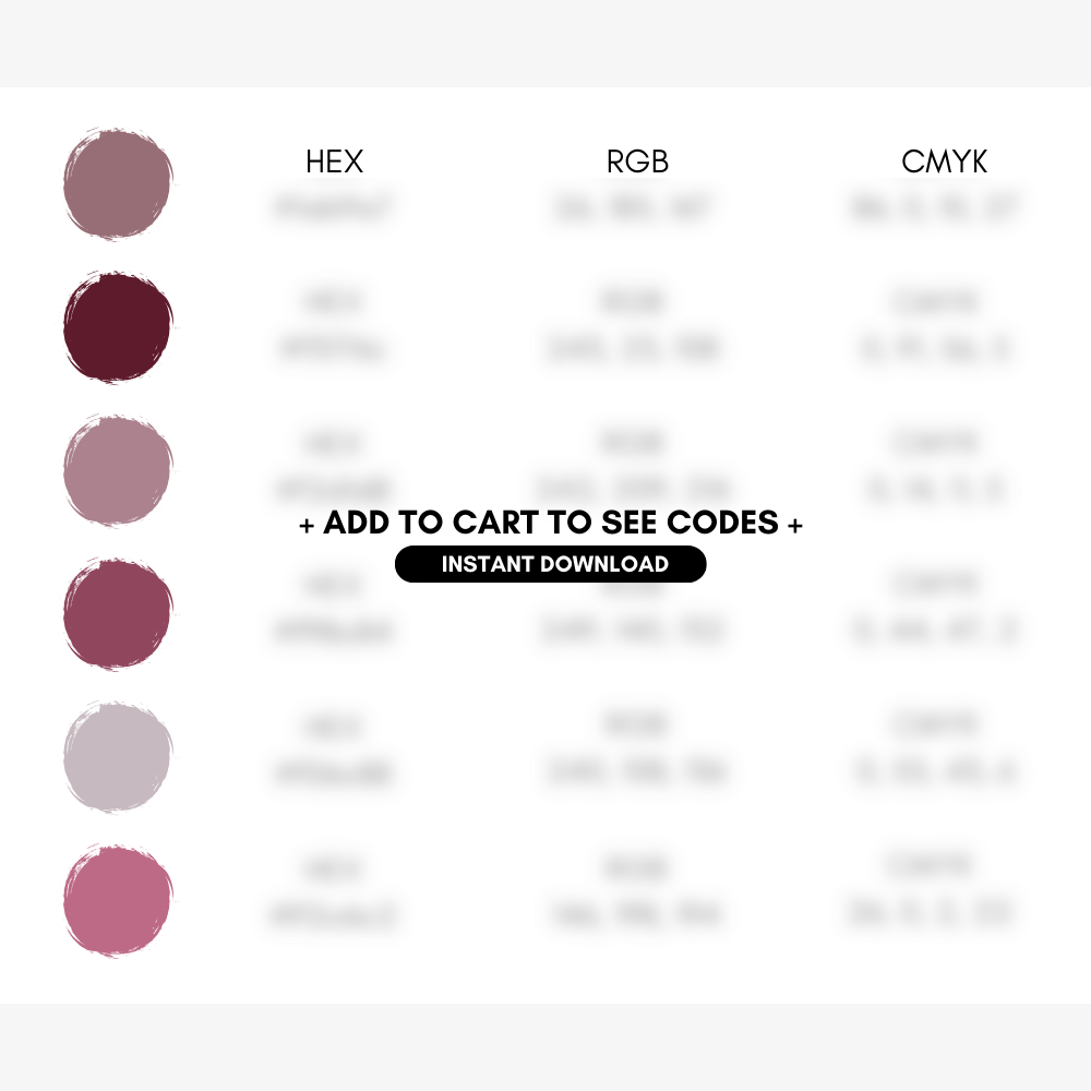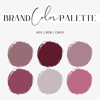 Our Kiss & Tell palette is ideal for both print and digital applications, and includes precise Hex Codes, RGB, and CMYK values to ensure consistency across all platforms. With easy integration into tools like Canva, branding your business becomes a seamless process. Transform your marketing materials and craft a cohesive brand identity that resonates with your audience. Elevate your design projects with this sophisticated color palette and let your brand tell its unique story.