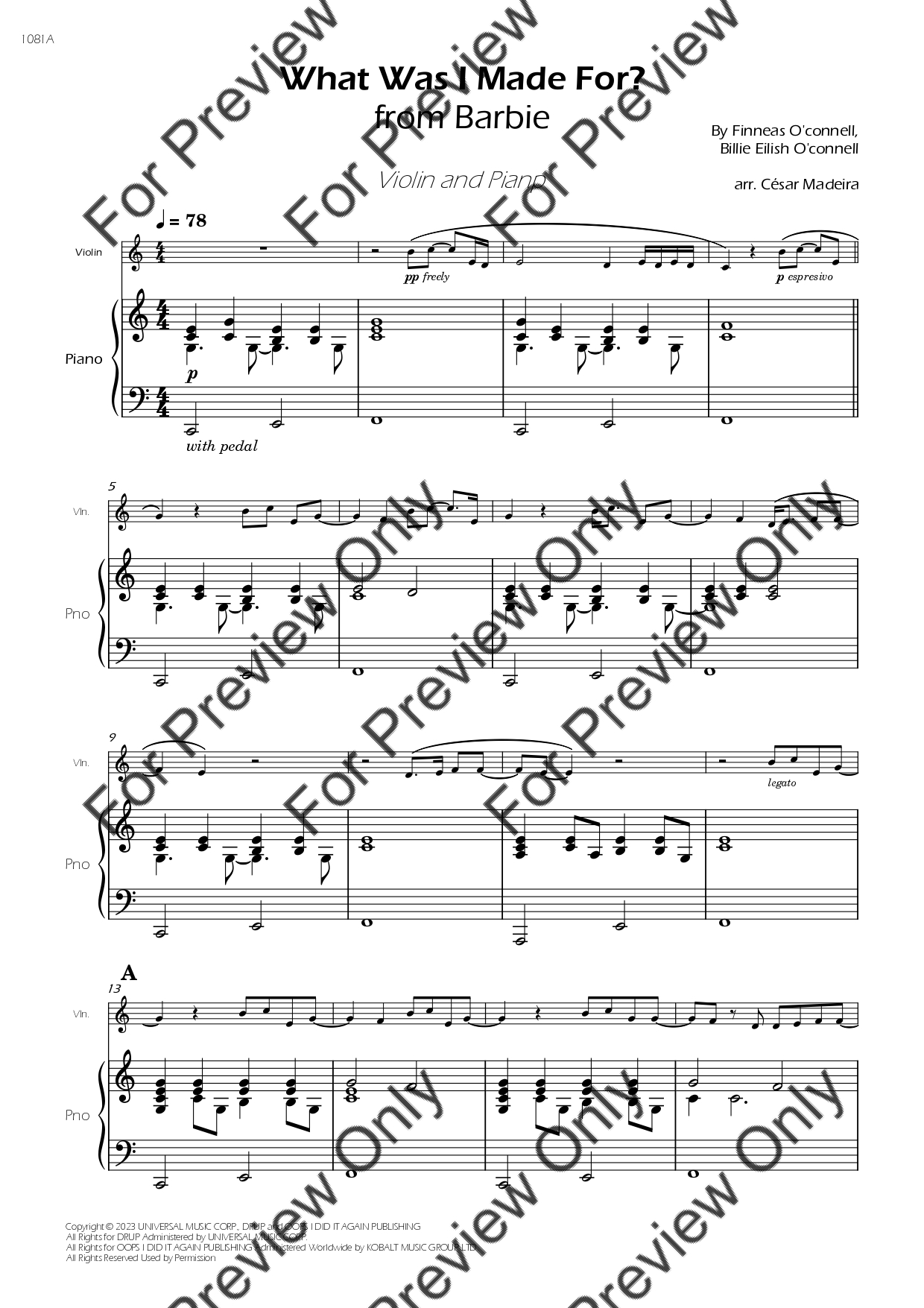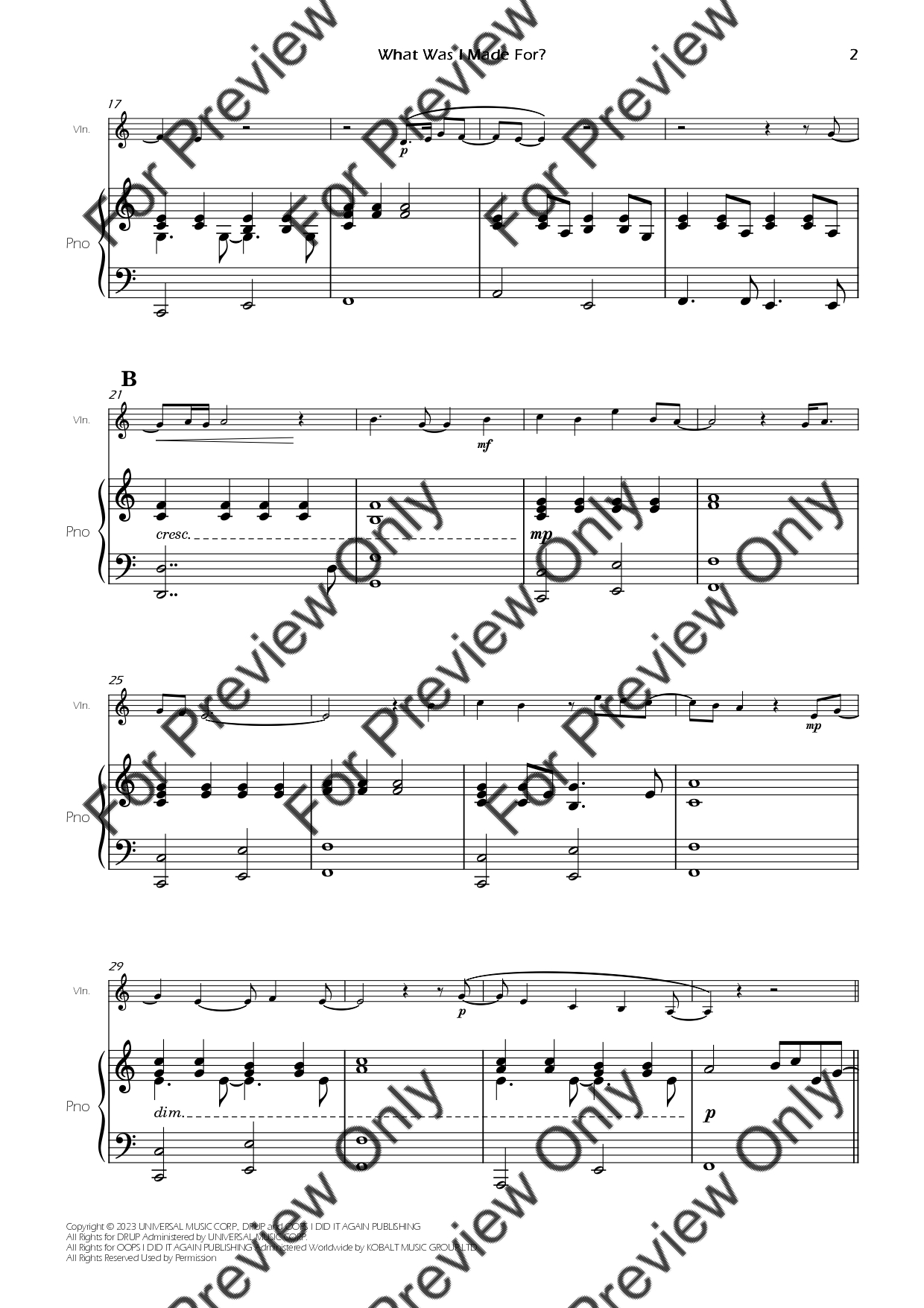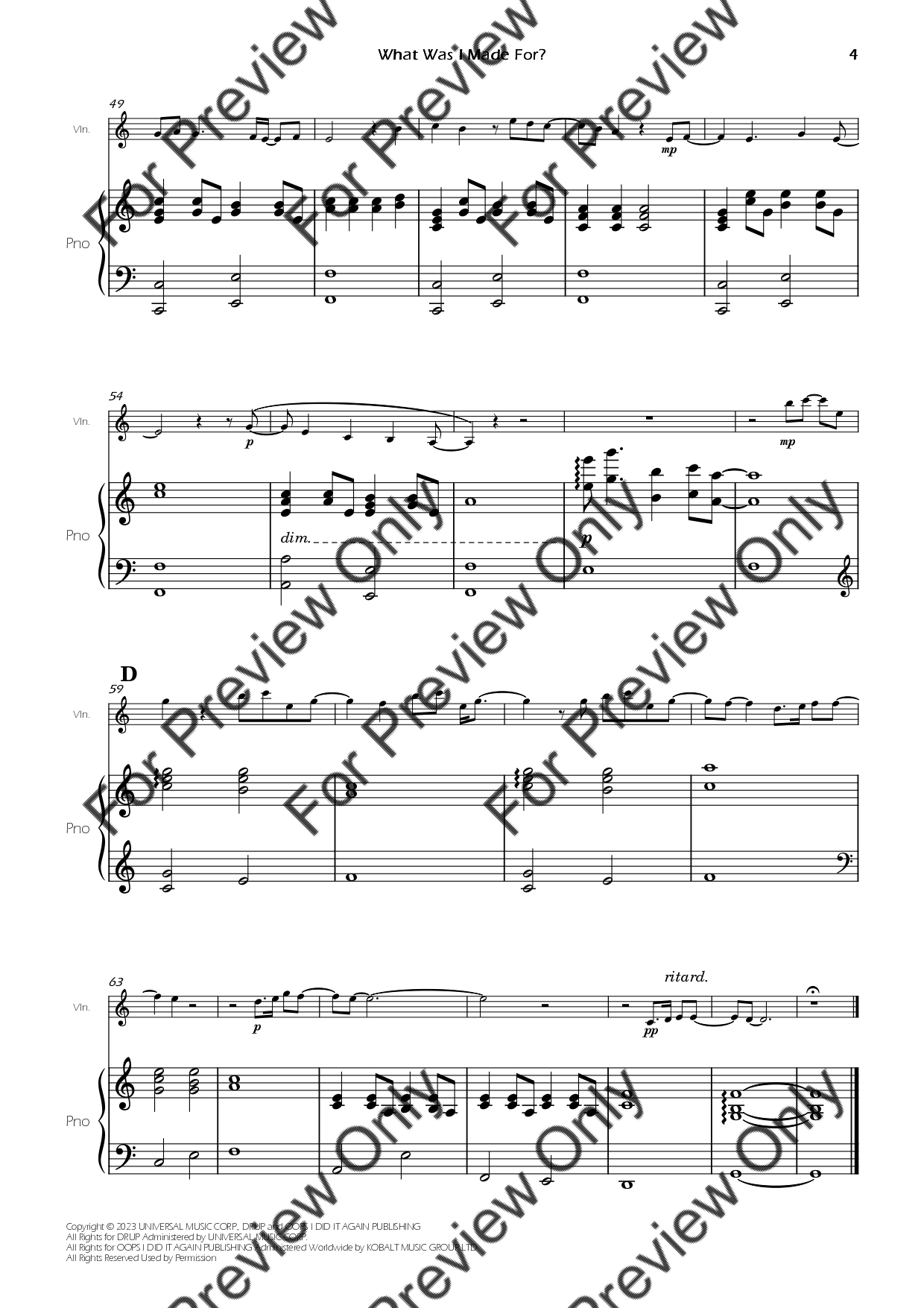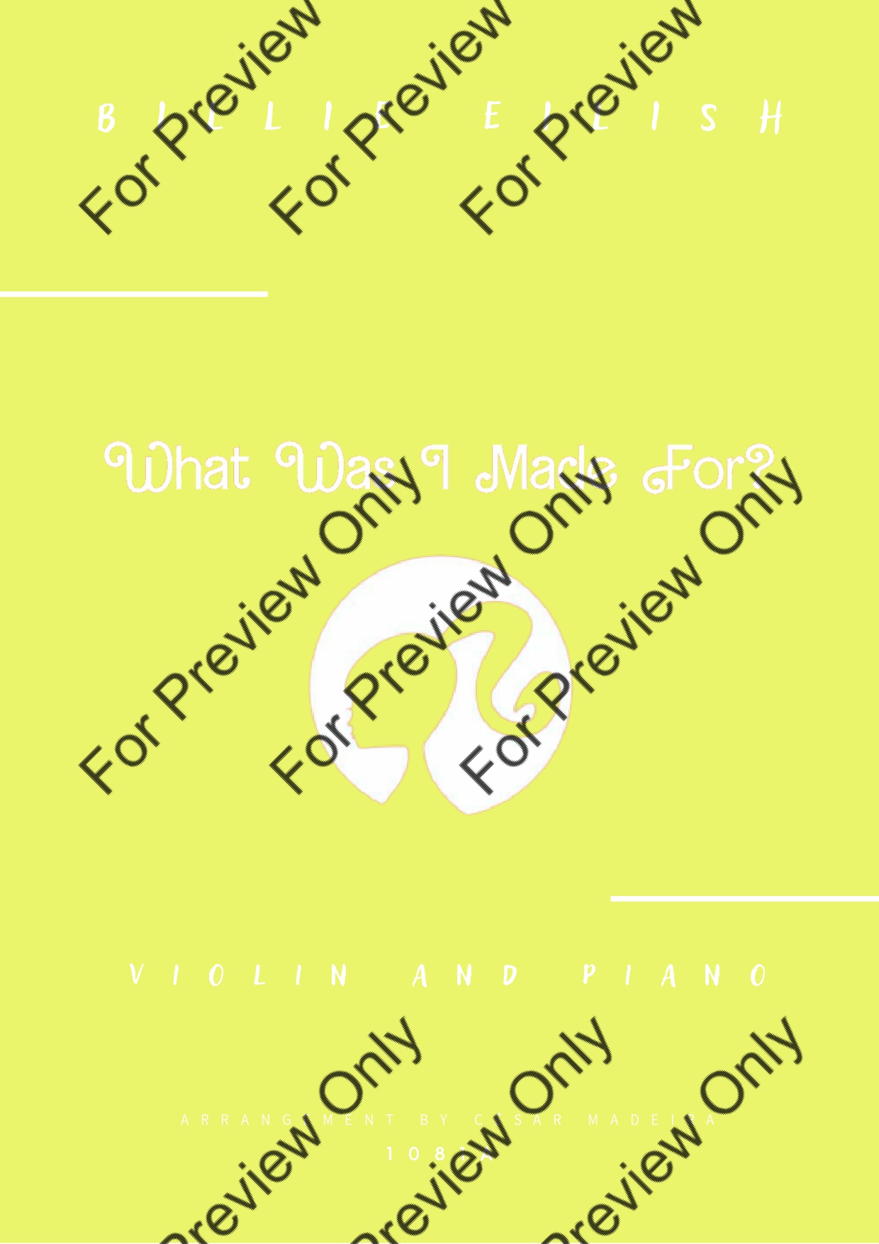 What Was I Made For? by Billie Eilish from Barbie Girl. Arrangement for Violin and Piano. With Full Score and Individual Parts. Have fun!