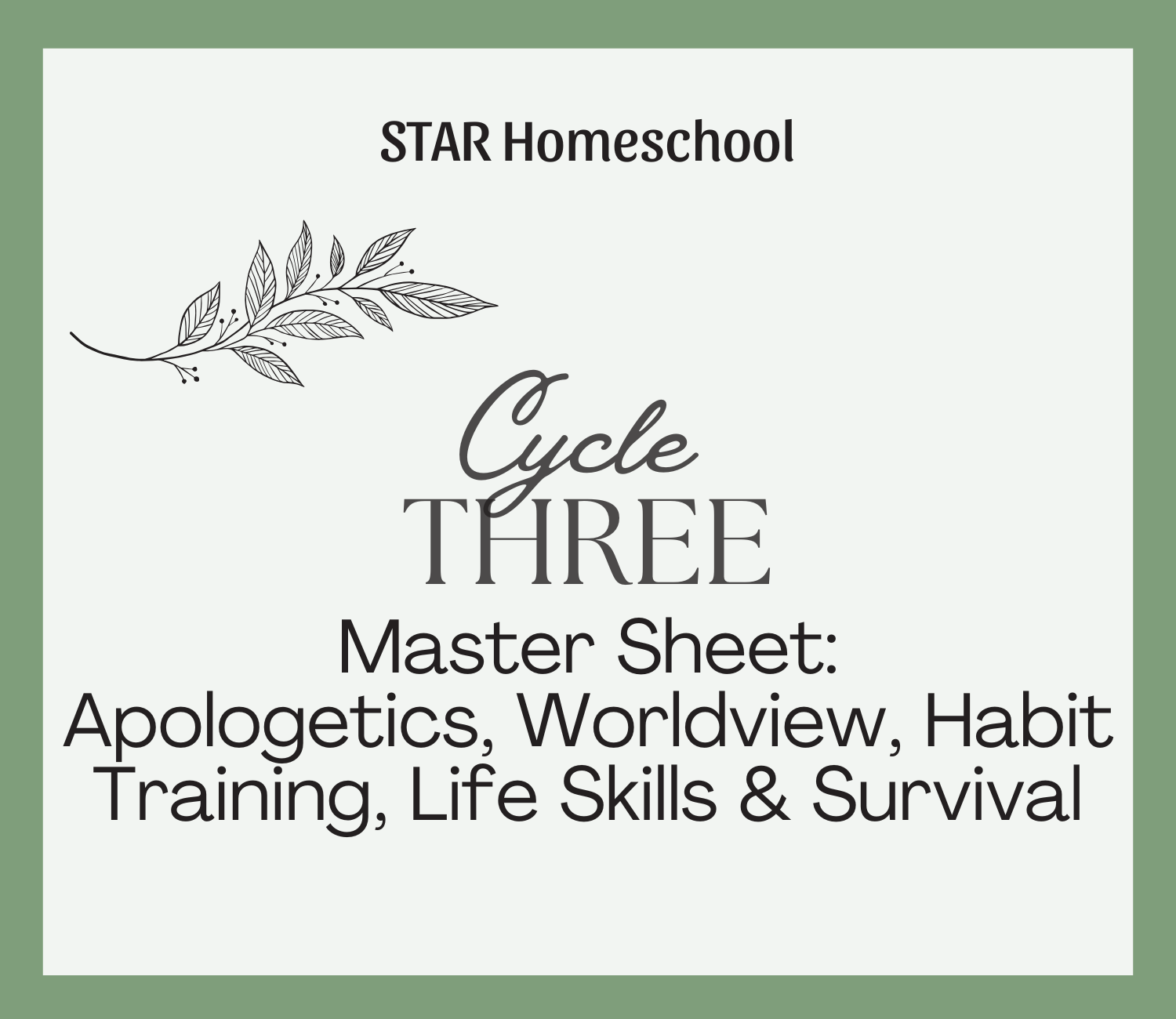 Cycle 3 Master Sheet: Apologetics, Worldview, Habit Training, Life & Survival