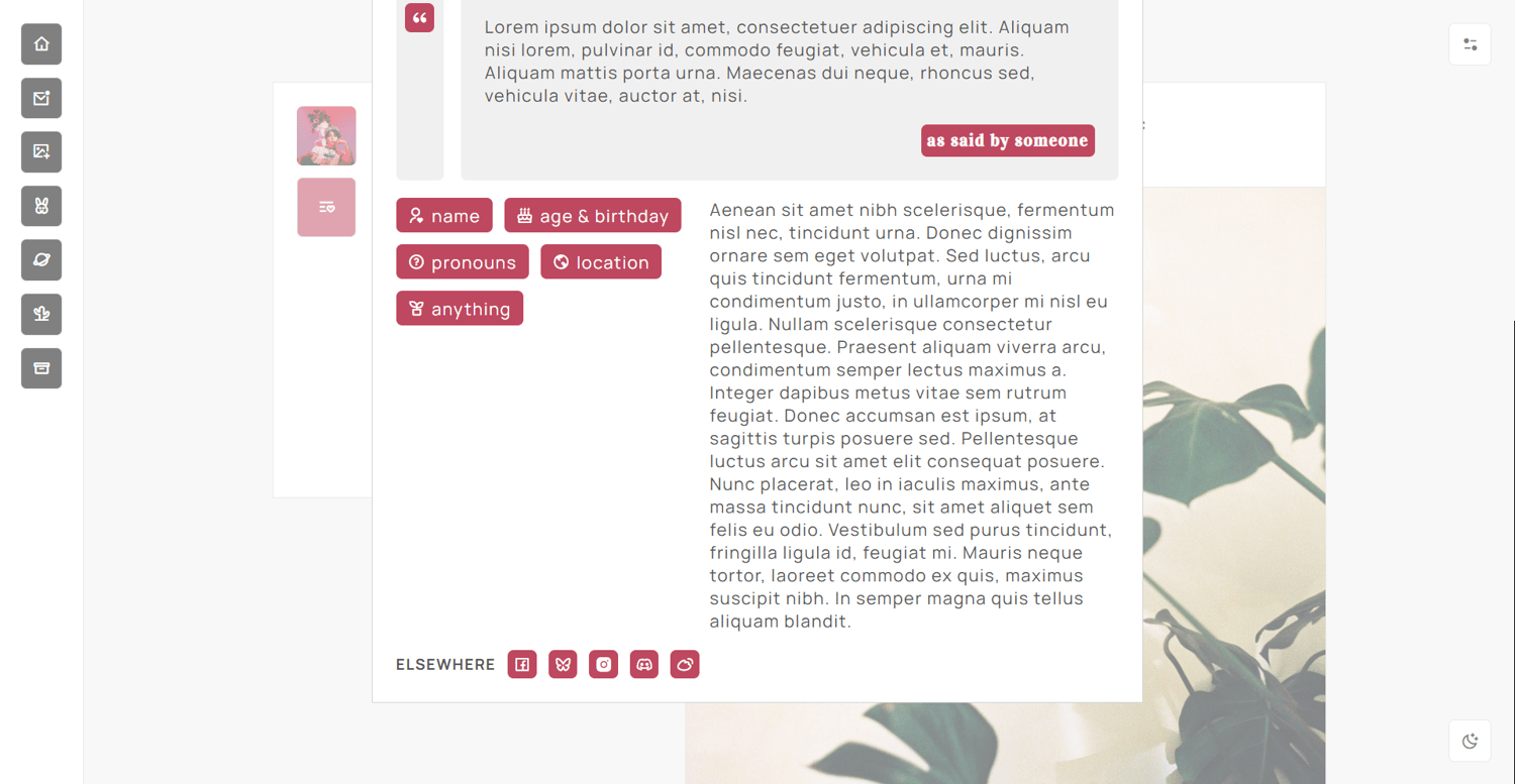 features: 50x50px icon image, blog title, three custom links, about title, quote section, about info section, about section, socials section, 610x280px about image, option to show submit link, option for bold text color, 540px text posts (change the post size by replacing 540px to [insert post size]px), option to show or hide tags, option for back to top