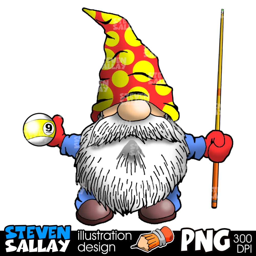 Billiards Clip Art - 9 Ball Gnome - PNG - Cartoon - Digital Download.