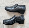 ALEGRIA "Eryn Chromeo" blue/black leather clogs - size 10 1/2