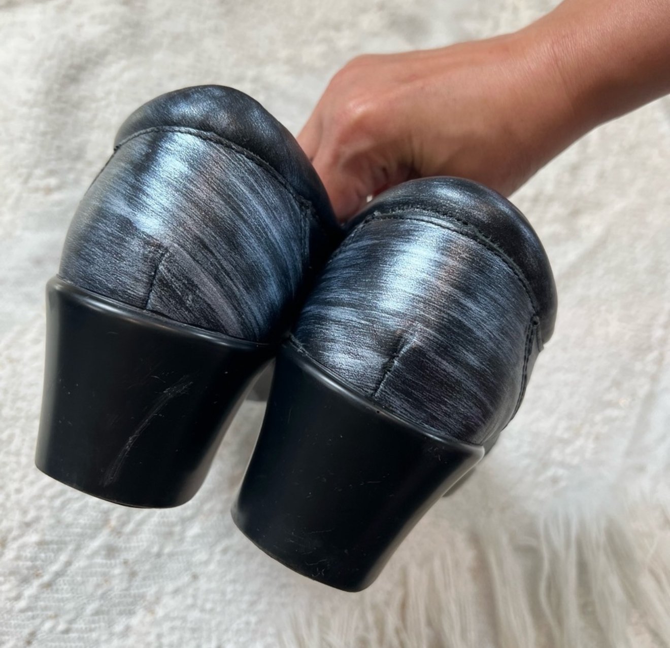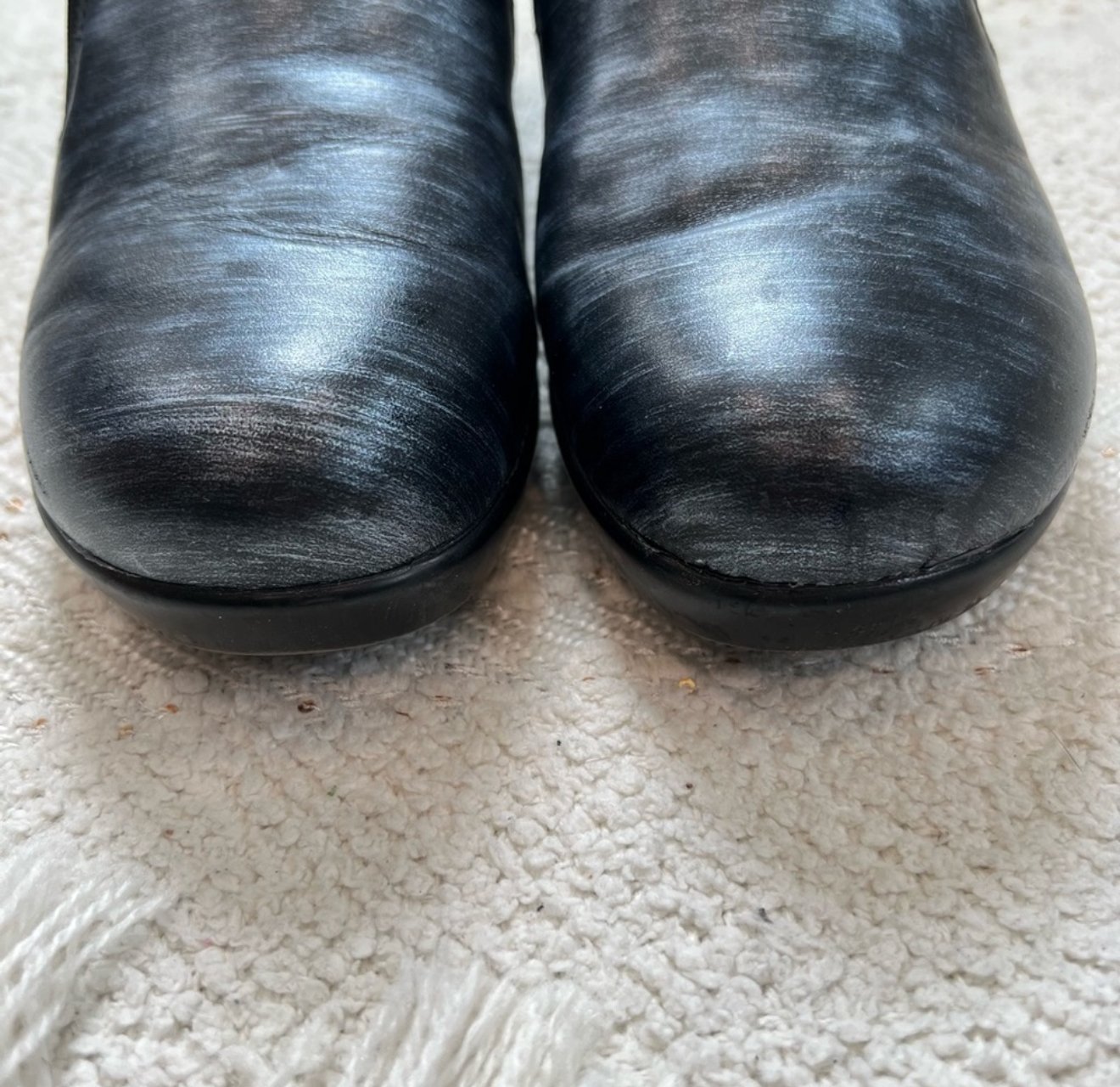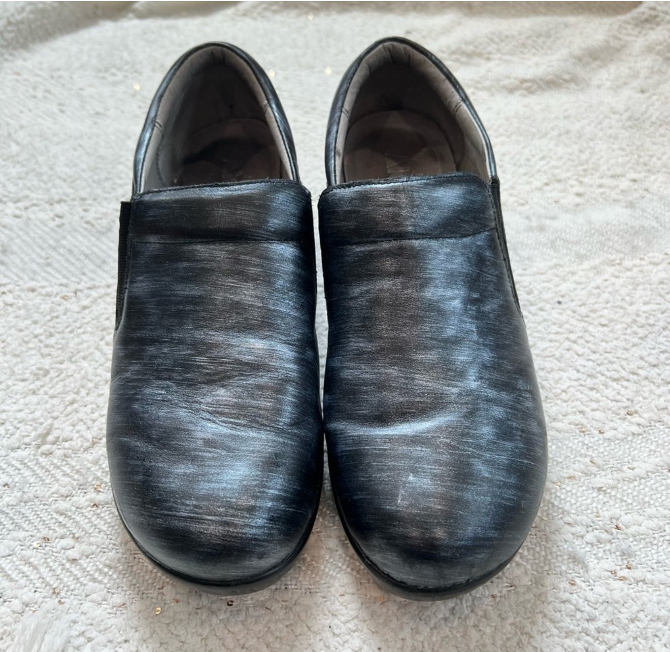 ALEGRIA Eryn Chromeo blue/black leather slip on clogs.