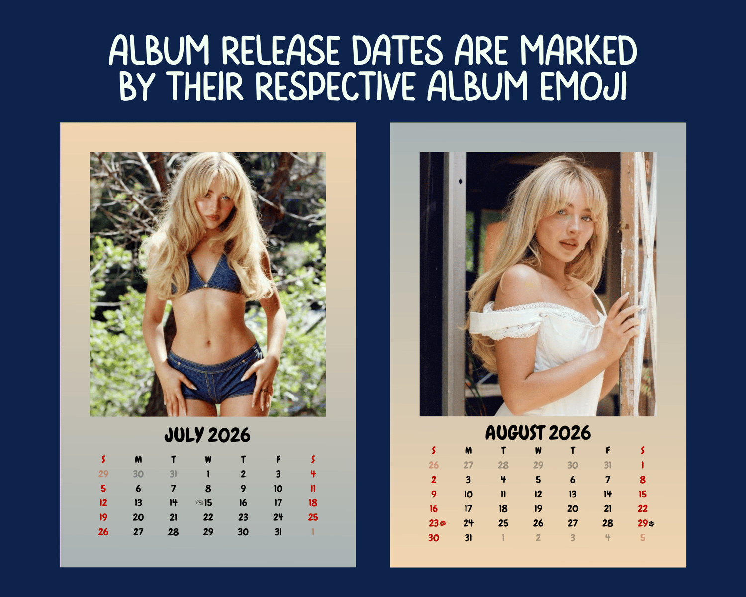 Sabrina Carpenter 2026, Digital Calendar, Calendar 2026, Digital download