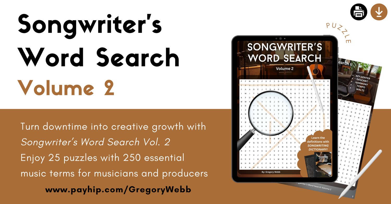 🧩 Keep learning and relaxing with Songwriter’s Word Search Vol. 2. Enjoy 25 all-new puzzles filled with 250 essential songwriting and music terms. Expand your knowledge, have fun, and stay creatively sharp. Pair it with the Songwriting Dictionary for the ultimate experience.