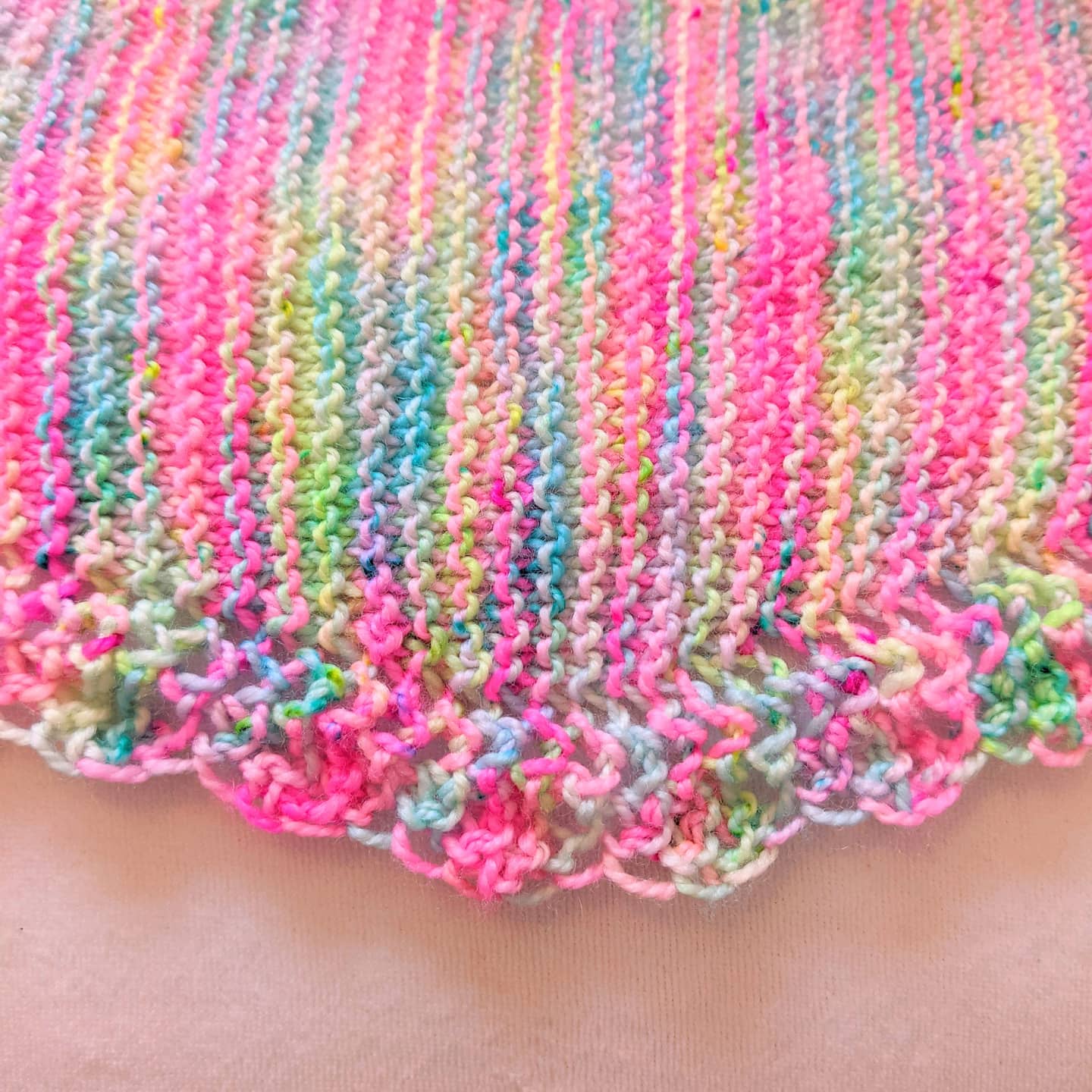 The best way to get the most out of your yarn is to weigh it before you begin. Then when you have used half of your yarn less approx 5g you can go on to do the central and decrease panels. This way means you could actually use more than 100g for a bigger cuddlier shawl if you wish! And no “yarn chicken” necessary!