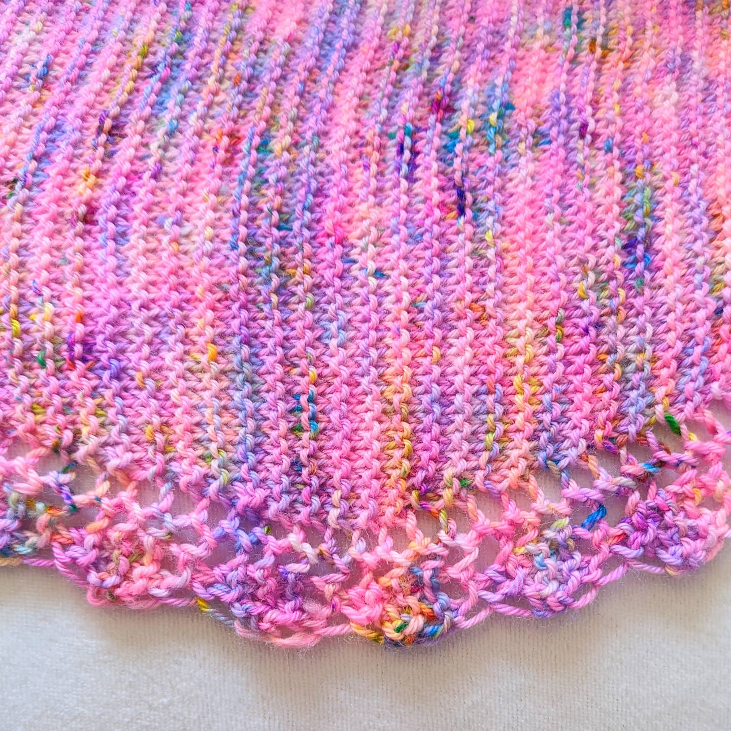 Pattern includes written and charted instructions for the Sandy Floss edging.