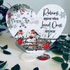 Beautiful memorial Robins appear design to fit the hearts with heart base from Woodform Crafts.