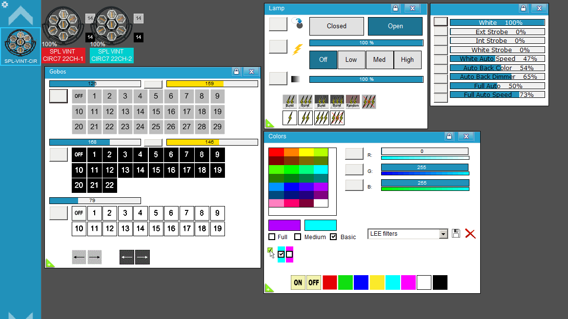 Librería para Freestyler DMX del Blinder Vintage Circulus 7 "SPL-VINT-CIRC7" de Sanyi Lights (4-22-28-49-64CH).