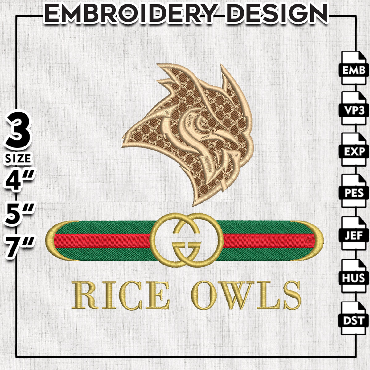#Gucci #NCAA #RiceOwl #EmbroideryDesigns #CollegeFootball #RiceOwls #EmbroideryFiles #SportsEmbroidery #TeamSpirit #RiceUniversity #NCAAFootball #CustomEmbroidery #CollegeSports #OwlPride #EmbroideryArt #FanGear #DIYEmbroidery #RiceOwlsFootball #NCAAFans