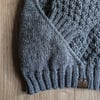 Tyche is a raglan pullover knitted top-down with a hood and a kangaroo pocket in the front. It has a textured stitch pattern all over, with a transition in the seersucker stitch pattern to stockinette at the hood. The pocket is knitted with stockinette stitch all over. Both of the pocket and the hood has I-cord on the edges to make them more attractive.