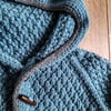 The sample is showing a size 2-4 years hoodie, knitted in 2 colorways: blue (34.0174) and grey (34.0324). The color change happens at the armholes. For inspiration it also worth checking the projects on Ravelry, because my lovely test knitters got really creative with colors!