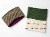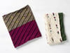 - Yarn: Bulky weight yarn, 215 yards. Models shown in Cloudborn Fibers Superwash Merino Bulky (100% superwash merino wool, 109 yards per 100g hank: Bay of Bengal Splash (main color) with Moss (contrasting color), 1 hank each, and Grey River Splash (main color) with Magenta (contrasting color), 1 hank each.