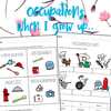 -12 books talking about each occupation listed below. Each mini book has 3 pages, all 3 pages are easily printed in 1 page. Just cut and staple.