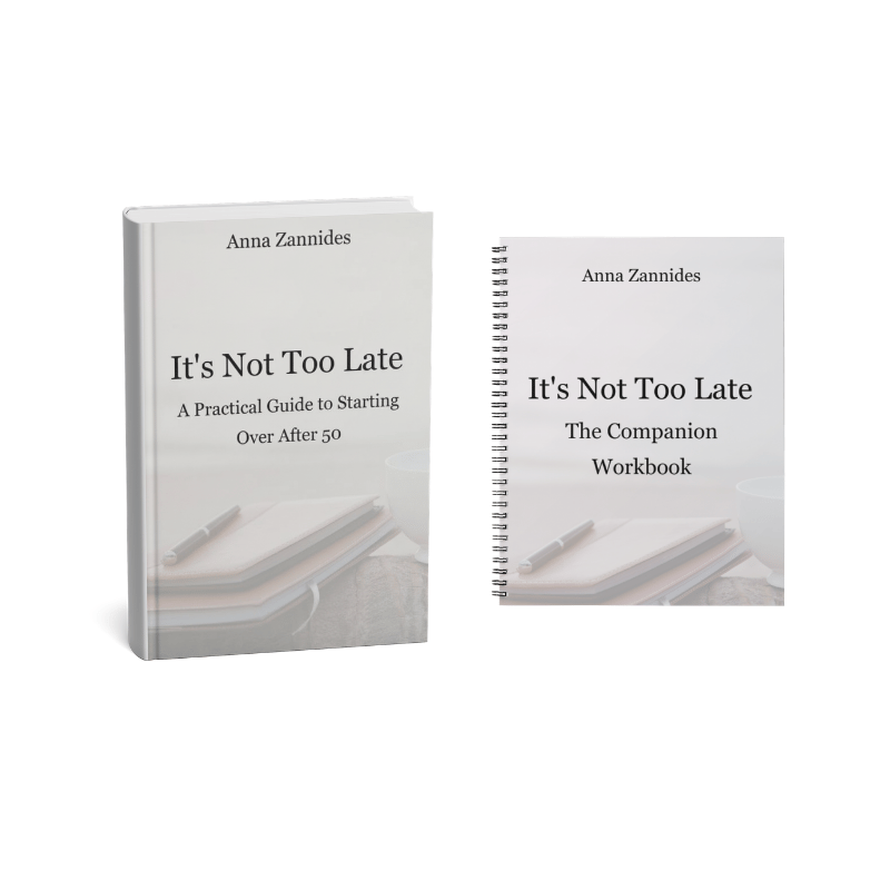 It's Not Too Late is a practical guide and companion workbook for anyone over 50 who feels they have outgrown the life they built.