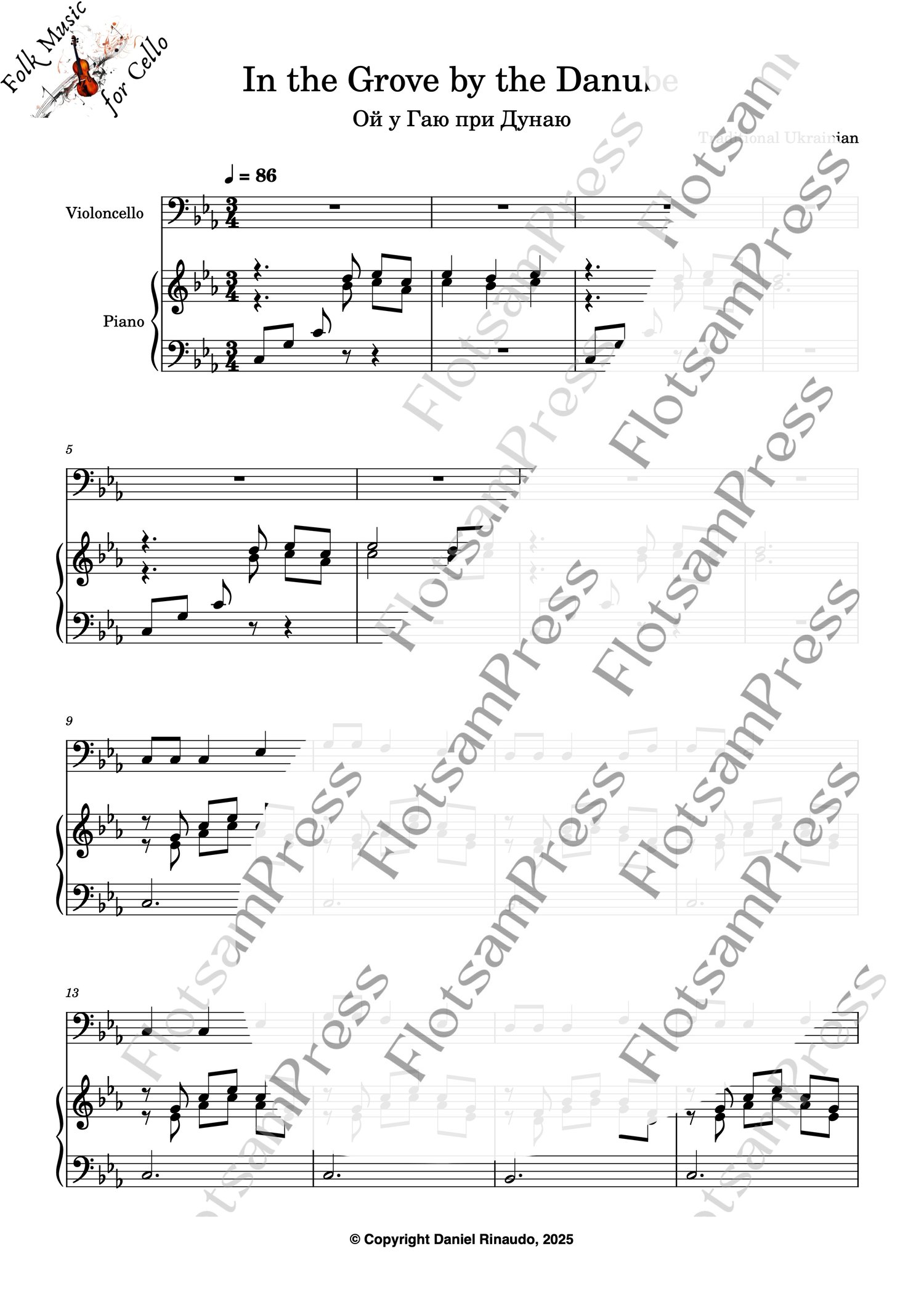 This arrangement of In the Grove by the Danube is written for beginner to lower-intermediate cello players, with a simple and supportive piano accompaniment. Perfect for church services, lessons, or home practice.