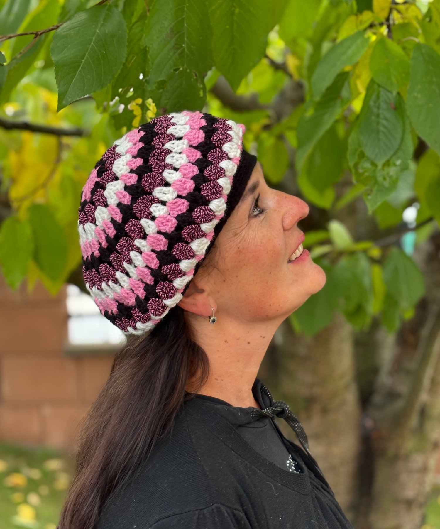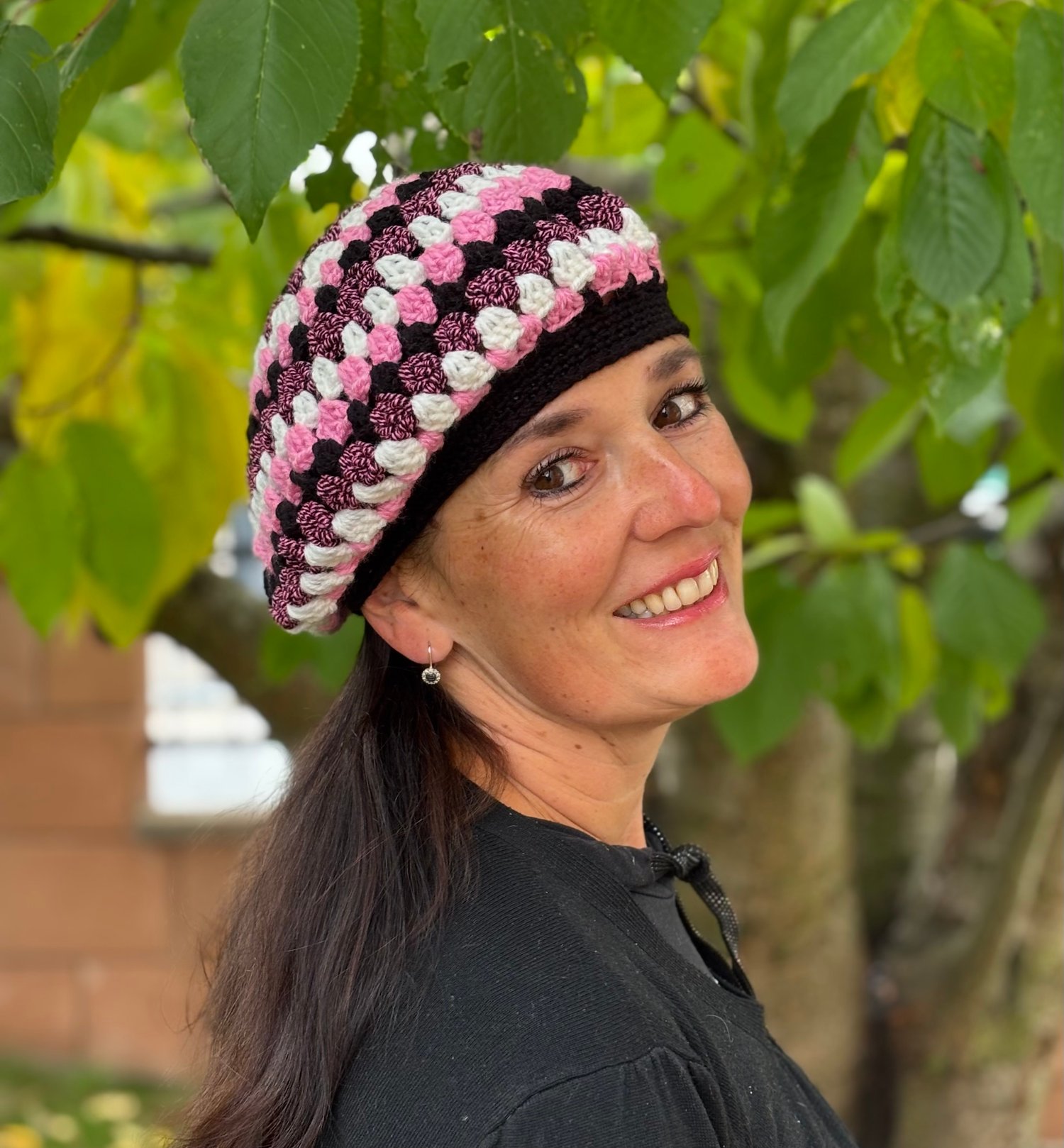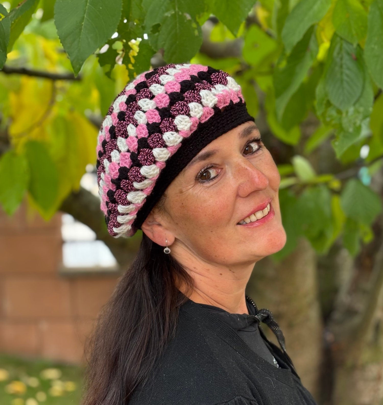 Přeji hodně radosti s háčkováním a těším se na fotky vašeho barevného, elegantního baretu!