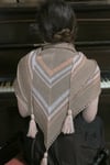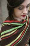 This stunning but simple shawl features a bold art deco colour scheme and optional decorative tassles. Knitted from the top downin stocking stitch, the shawl is available in two sizesSize