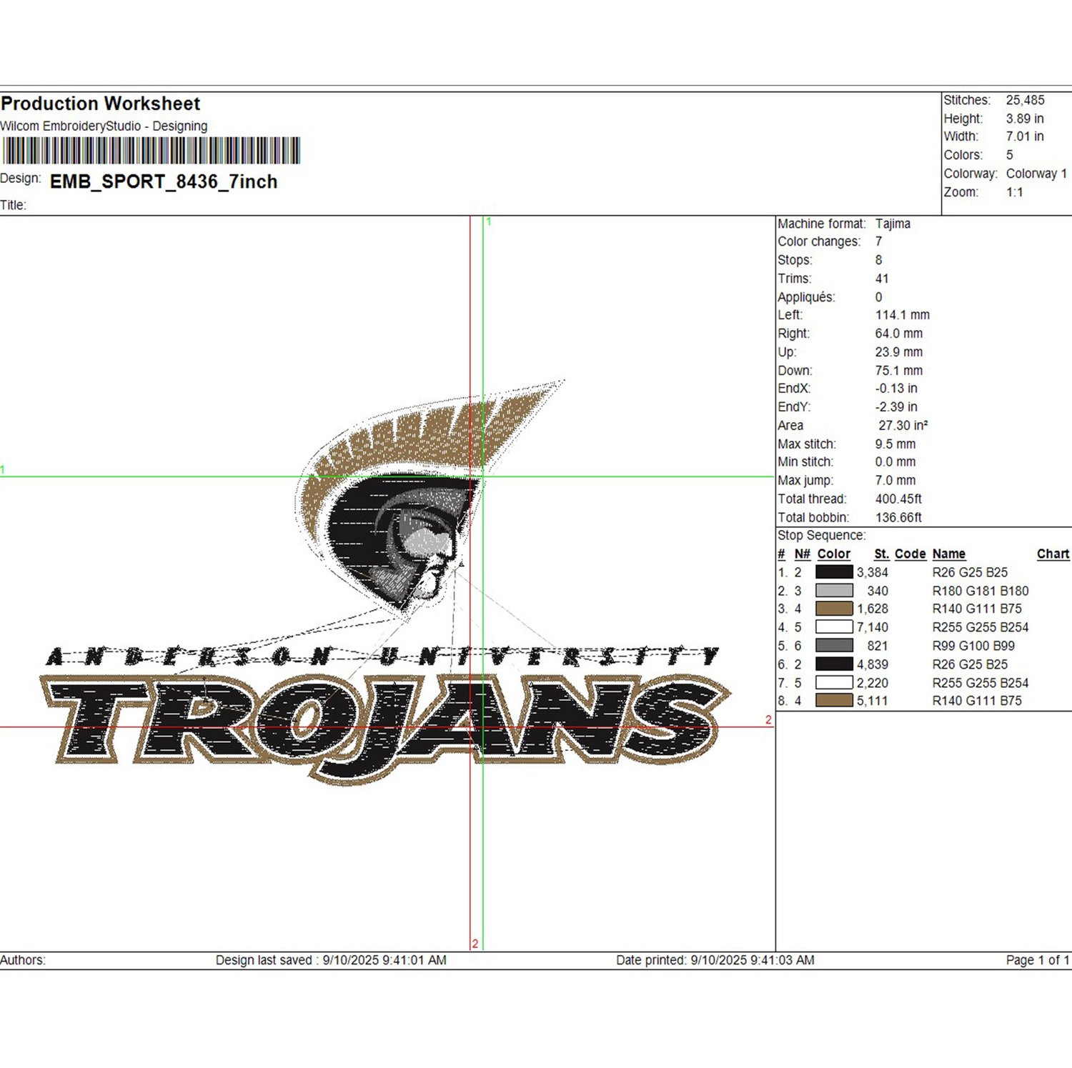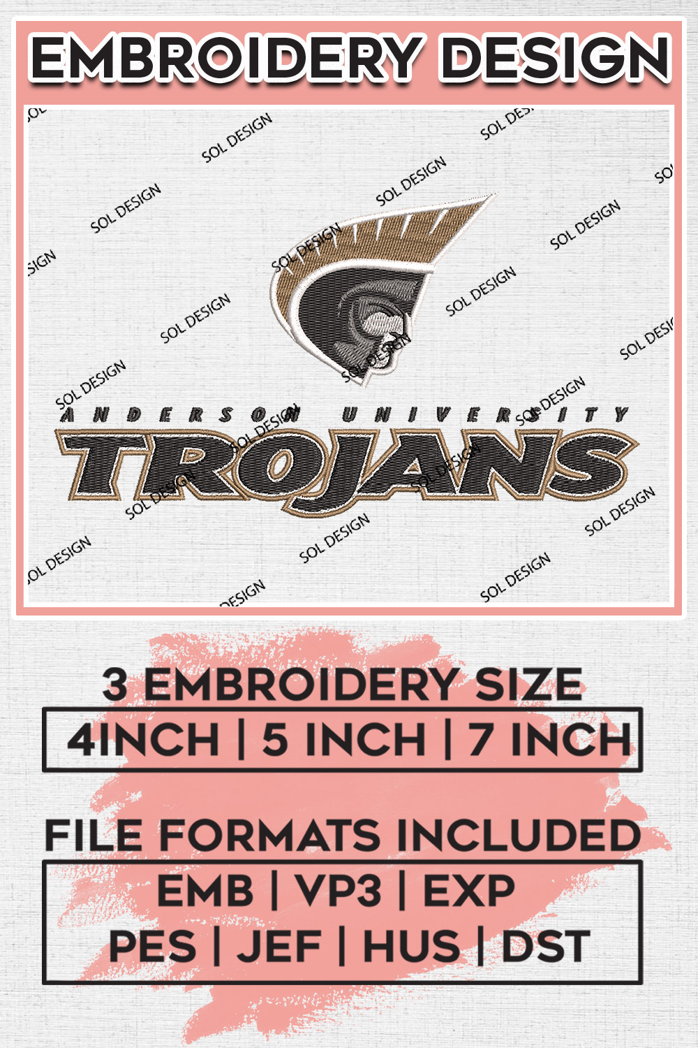 NCAA Anderson Trojans College Football Team Logo Embroidery Designs, Ncaa Embroidery Files, NCAA Anderson Trojans Football Team Logo Embroidery, Game Day Machine Embroidery Design, Digital Download