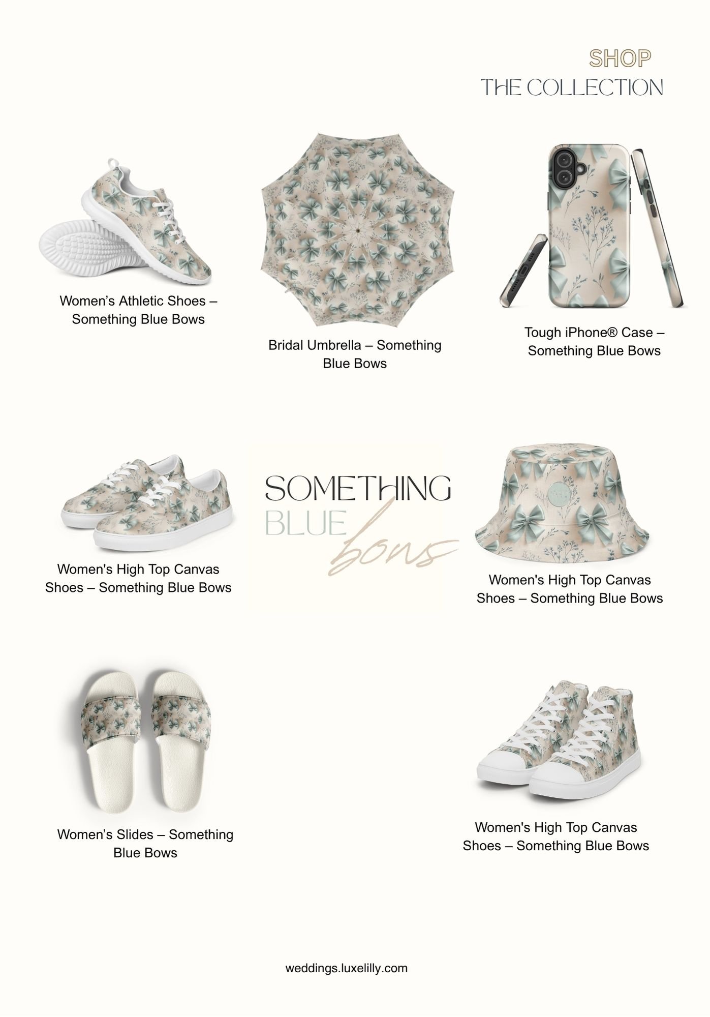 Our Something Blue Bows Collection is a dreamy edit of soft blue florals, satin ribbons, and stylish details made for the bride who’s doing it her way. From flirty sneakers to the most aesthetic umbrella moment ever, every piece brings that perfect pop of “something blue” to your big day.