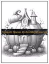 Pumpkin Houses Coloring Book is a coloring book for adults with 50 Whimsical Pumpkin home to color creatively, both through the download of PNG and PDF files.