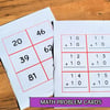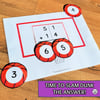 Then introduce double digit adding by placing a math problem card on the basketball hoop. As your child solves the problem they will place the correct number ball to the hoop.